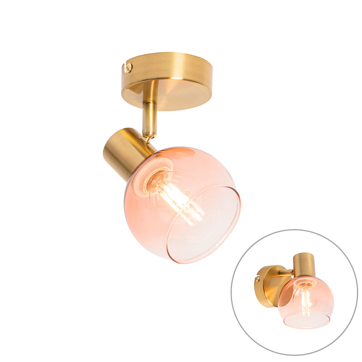 Art Deco bodové svetlo zlaté s ružovým sklom – Vidro