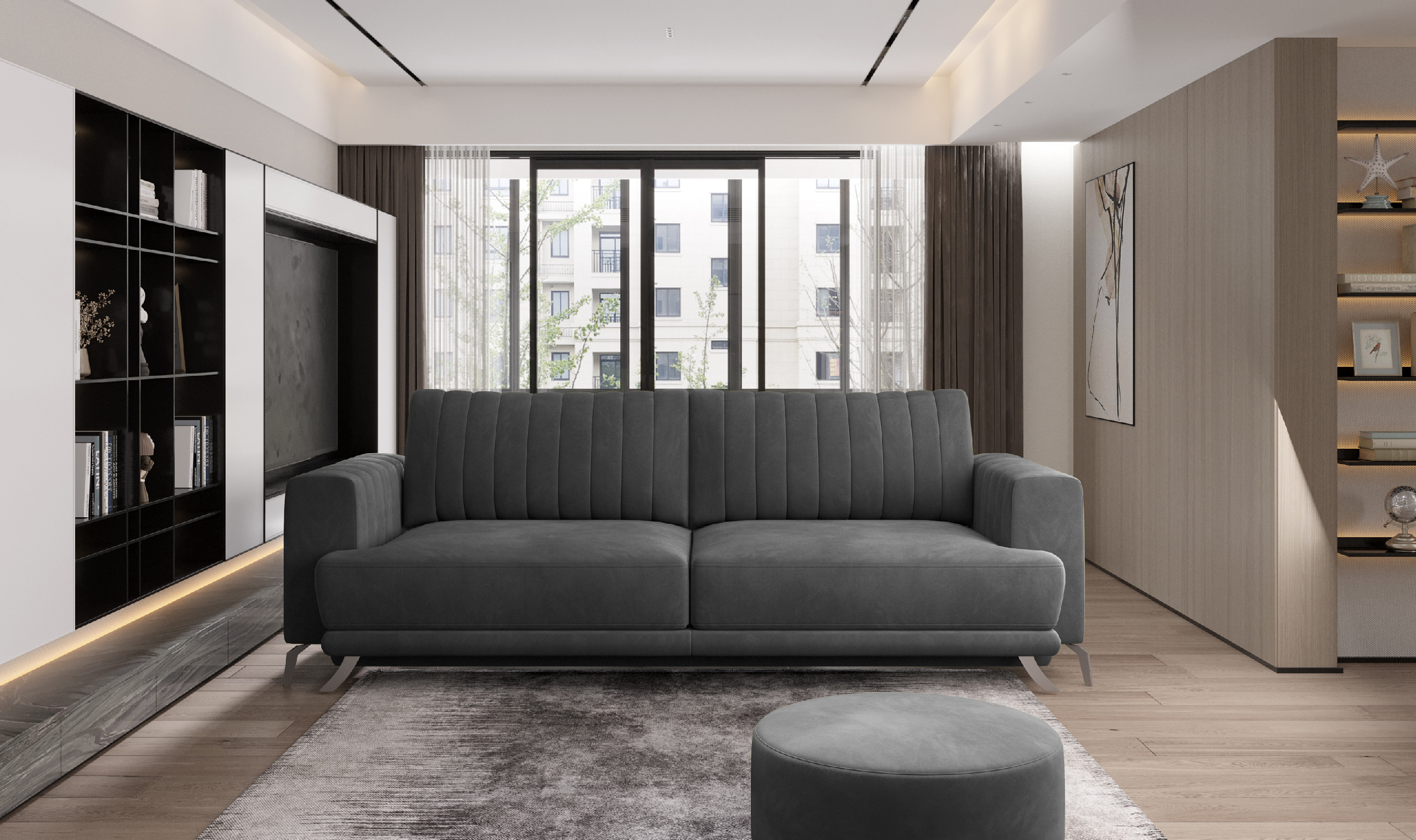 Očarujúca pohovka Elise zaujme svojím tvarom a zdobeným prešívaním na operadle a opierkách pohovky. Je vyrobená v niekoľkých typoch látok v rôzných farebných prevedeniach. Pohovka Elise je rozkladacia, dá sa rozložiť na 115 x 145 cm. Rozloženie je formou AutomatuPohovka Elise je celočalúnená aj zo zadnej strany. Lakťové opierky sú ozdobené prešívaním. Nožičky na pohovke sú vpredu oceľové, plastové vzadu. Je vhodná aj do menších priestorov.