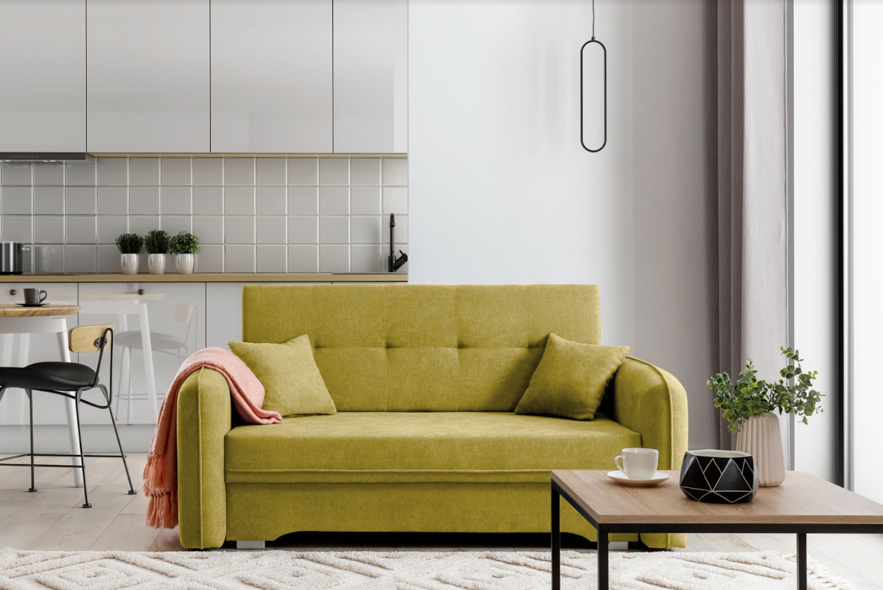 Dizajnová rozkladacia pohovka LAINE je originálna a veľmi štýlová pohovka v rôznych farebných prevedeniach. Je vhodná do modernej obývačky alebo do hosťovskej či detskej izby. Pohovka LAINE má jednoduché prešívanie a dva dekoračné vankúšiky v cene. Vďaka pohovke LAINE sa budete vo vašom byte alebo dome cítiť veľmi pohodlne, pomocou DL mechanizmu si jednoducho pohovku rozložíte a získate miesto na príležitostné spanie.