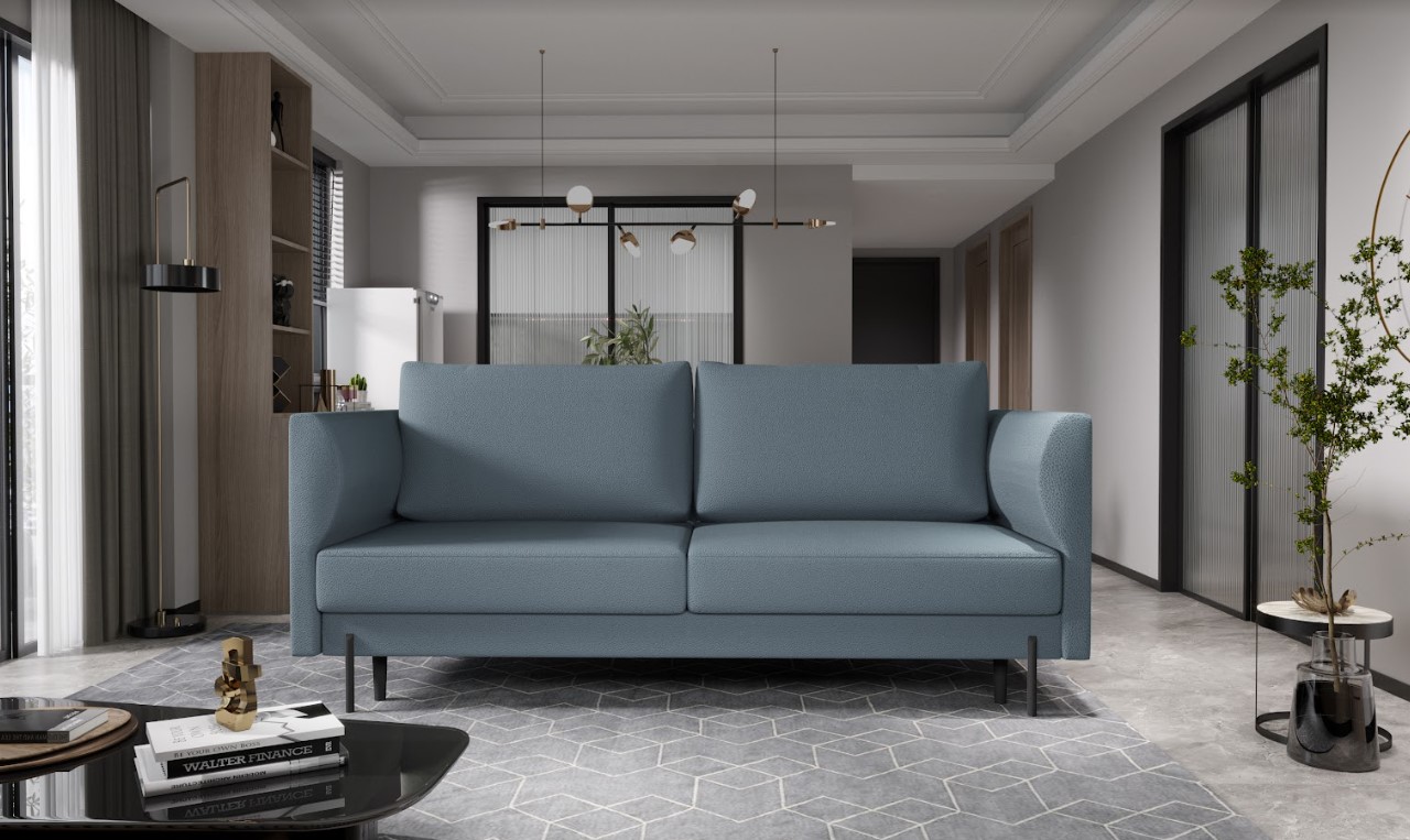 Vytvorte si z obývacej izby atraktívny priestor s dizajnovou rozkladacou pohovkou REVI. Vďaka vysokým kovovým čiernym nohám pôsobí konštrukcia pohovky odľahčene, pričom však nestráca na stabilite. Veľkým plusom je možnosť rozloženia založené na DL automate – vďaka ktorému bude ľahké získať miesto na spanie s rozlohou až 140 x 200 cm. Spravte si z obývacej izby harmonický a zladený celok vďaka originálnej pohovke REVI.