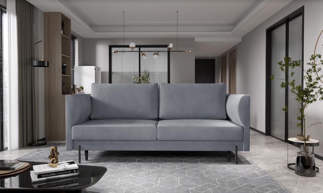 Vytvorte si z obývacej izby atraktívny priestor s dizajnovou rozkladacou pohovkou REVI. Vďaka vysokým kovovým čiernym nohám pôsobí konštrukcia pohovky odľahčene, pričom však nestráca na stabilite. Veľkým plusom je možnosť rozloženia založené na DL automate – vďaka ktorému bude ľahké získať miesto na spanie s rozlohou až 140 x 200 cm. Spravte si z obývacej izby harmonický a zladený celok vďaka originálnej pohovke REVI.
