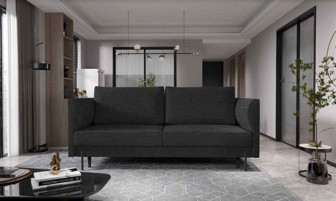 Vytvorte si z obývacej izby atraktívny priestor s dizajnovou rozkladacou pohovkou REVI. Vďaka vysokým kovovým čiernym nohám pôsobí konštrukcia pohovky odľahčene, pričom však nestráca na stabilite. Veľkým plusom je možnosť rozloženia založené na DL automate – vďaka ktorému bude ľahké získať miesto na spanie s rozlohou až 140 x 200 cm. Spravte si z obývacej izby harmonický a zladený celok vďaka originálnej pohovke REVI.
