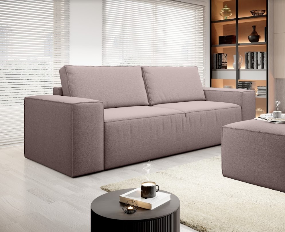 Dizajnová pohovka SILLA je čalúnená látkou, výplň tvorí HR pena s vlnovou pružinou typu B. Pohovku je možné naimpregnovať alebo v prípade znečistenia očistiť.