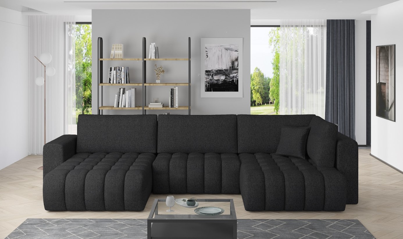 Vytvorte si z obývacej izby atraktívny priestor s dizajnovou rohovou sedacou súpravou BONITO v ľavom prevedení. Mimoriadny dizajn dodáva pohovke pútavé prešívanie na sedení, vďaka čalúnenej zadnej strane je vhodná aj do priestoru. Oceníte veľký úložný priestor a vybavenie rozkladacou funkciou na spanie, založenou na DL mechanizme – vďaka ktorému bude ľahké získať miesto na spanie s rozlohou až 120 x 300 cm. Spravte si z obývacej izby harmonický a zladený celok vďaka originálnej sedačke BONITO.