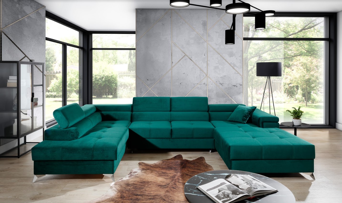 Vytvorte si z obývacej izby atraktívny priestor s dizajnovou sedacou súpravou EDUARDO v tvare U. Vďaka vyšším nohám z chrómovej ocele pôsobí konštrukcia sedačky odľahčene, pričom však nestráca na stabilite. Mimoriadny dizajn dodáva pohovke pútavé prešívanie sedenia, komfort užívania zvyšuje možnosť polohovania hlavovej opierky.  Vďaka čalúnenej zadnej strane je vhodná aj do priestoru. Veľkým plusom je úložný priestor a možnosť rozloženia na spanie, vďaka veľmi intuitívnemu systému delfín bude ľahké získať miesto na spanie s plochou až 125 x 265 cm. Spravte si z obývacej izby harmonický a zladený celok vďaka originálnej sedačke EDUARDO v ľavom prevedení.