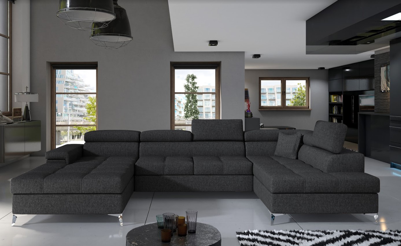 Vytvorte si z obývacej izby atraktívny priestor s dizajnovou sedacou súpravou v tvare U. Vďaka vyšším nohám z chrómovej ocele pôsobí konštrukcia sedačky odľahčene, pričom však nestráca na stabilite. Mimoriadny dizajn dodáva pohovke pútavé prešívanie sedenia, komfort užívania zvyšuje možnosť polohovania hlavovej opierky. Vďaka čalúnenej zadnej strane je vhodná aj do priestoru. Veľkým plusom je úložný priestor a možnosť rozloženia na spanie, vďaka veľmi intuitívnemu systému delfín bude ľahké získať miesto na spanie s plochou až 125 x 265 cm. Spravte si z obývacej izby harmonický a zladený celok vďaka originálnej sedačke RICARDO v pravom prevedení.