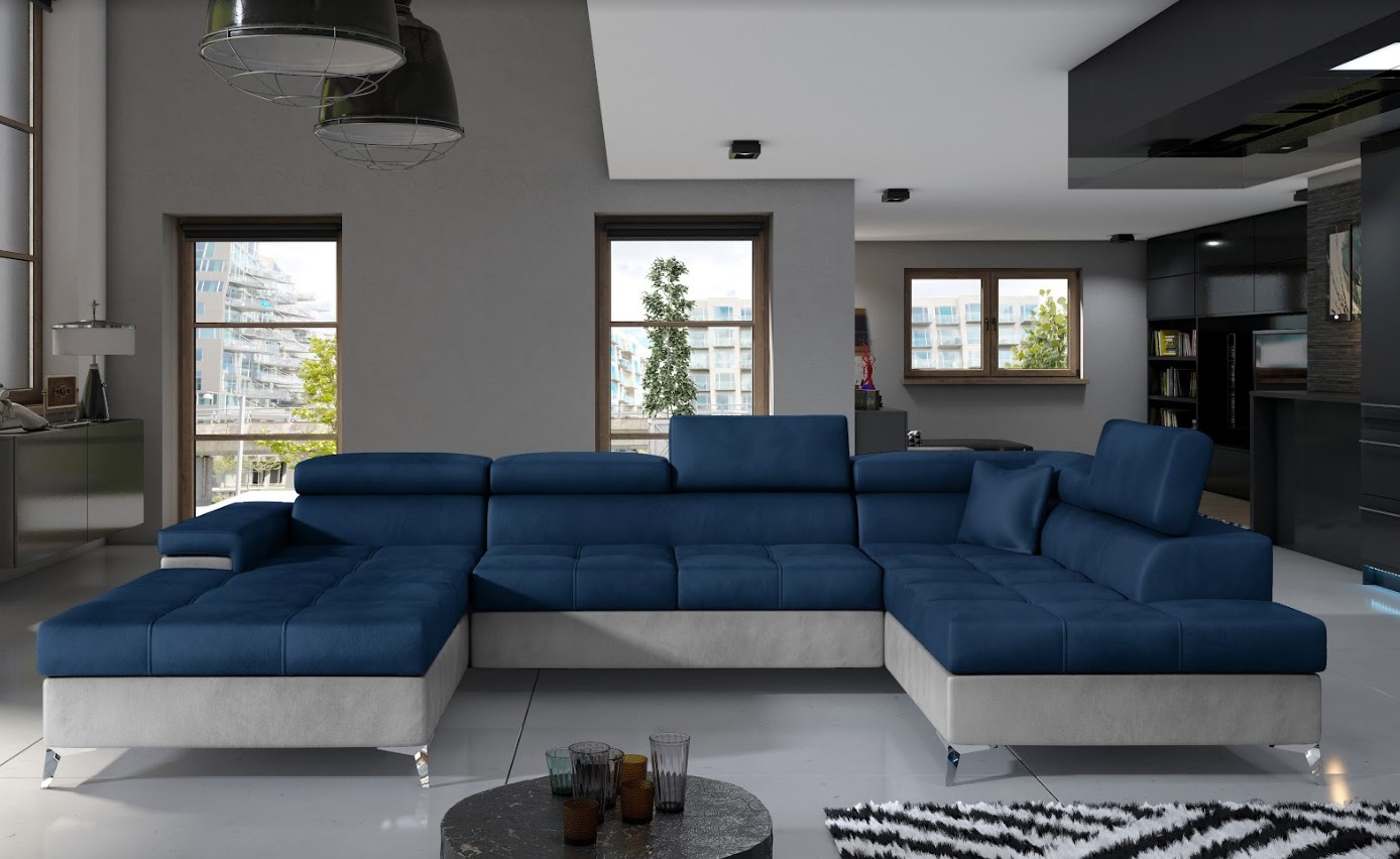 Vytvorte si z obývacej izby atraktívny priestor s dizajnovou sedacou súpravou v tvare U. Vďaka vyšším nohám z chrómovej ocele pôsobí konštrukcia sedačky odľahčene, pričom však nestráca na stabilite. Mimoriadny dizajn dodáva pohovke pútavé prešívanie sedenia, komfort užívania zvyšuje možnosť polohovania hlavovej opierky. Vďaka čalúnenej zadnej strane je vhodná aj do priestoru. Veľkým plusom je úložný priestor a možnosť rozloženia na spanie, vďaka veľmi intuitívnemu systému delfín bude ľahké získať miesto na spanie s plochou až 125 x 265 cm. Spravte si z obývacej izby harmonický a zladený celok vďaka originálnej sedačke RICARDO v pravom prevedení.