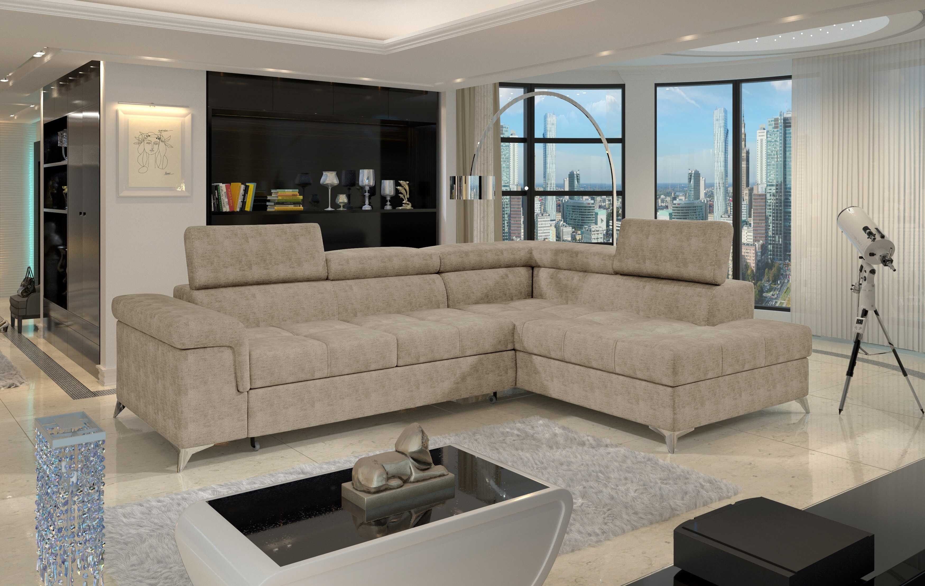 Rohová sedacia súprava ERIDANO je prémiový produkt, ktorý Vám pomôže pocítiť čo je skutočný komfort. Klasické usporiadanie v tvare písmena L je kombinované s modernými prvkami ovplyvňujúcimi komfort používania a mimoriadne štýlovými dekoračnými prvkami, akými sú kov, chrómové nožičky s vysokým leskom. Priestranné sedadlá, vhodne tvarované operadlo vybavené dodatočnými pohyblivými opierkami hlavy, široká lakťová opierka – to všetko vám spríjemní odpočinok v súkromí vášho domova. Rohová sedacia súprava Eridano je vyrobená z najkvalitnejších materiálov. Ako prémiový kus nábytku je vysoko odolný voči opotrebovaniu. To všetko vďaka starostlivo vybraným poťahovým materiálom a pevnej výplni sedadla – vlnitá pružina v kombinácii s penou T30 a kvalitnou pružnou HR penou dáva efekt výnimočnej mäkkosti a pružnosti, premietnutej do správnej opory tela počas odpočinku. Sedacia súprava Eridano sa dá rozložiť plocha na spanie 125 x 193 cm. Tiež je vybavená praktickým úložným boxom umiestneným otomane, ktorý sa otvára smerom nahor.