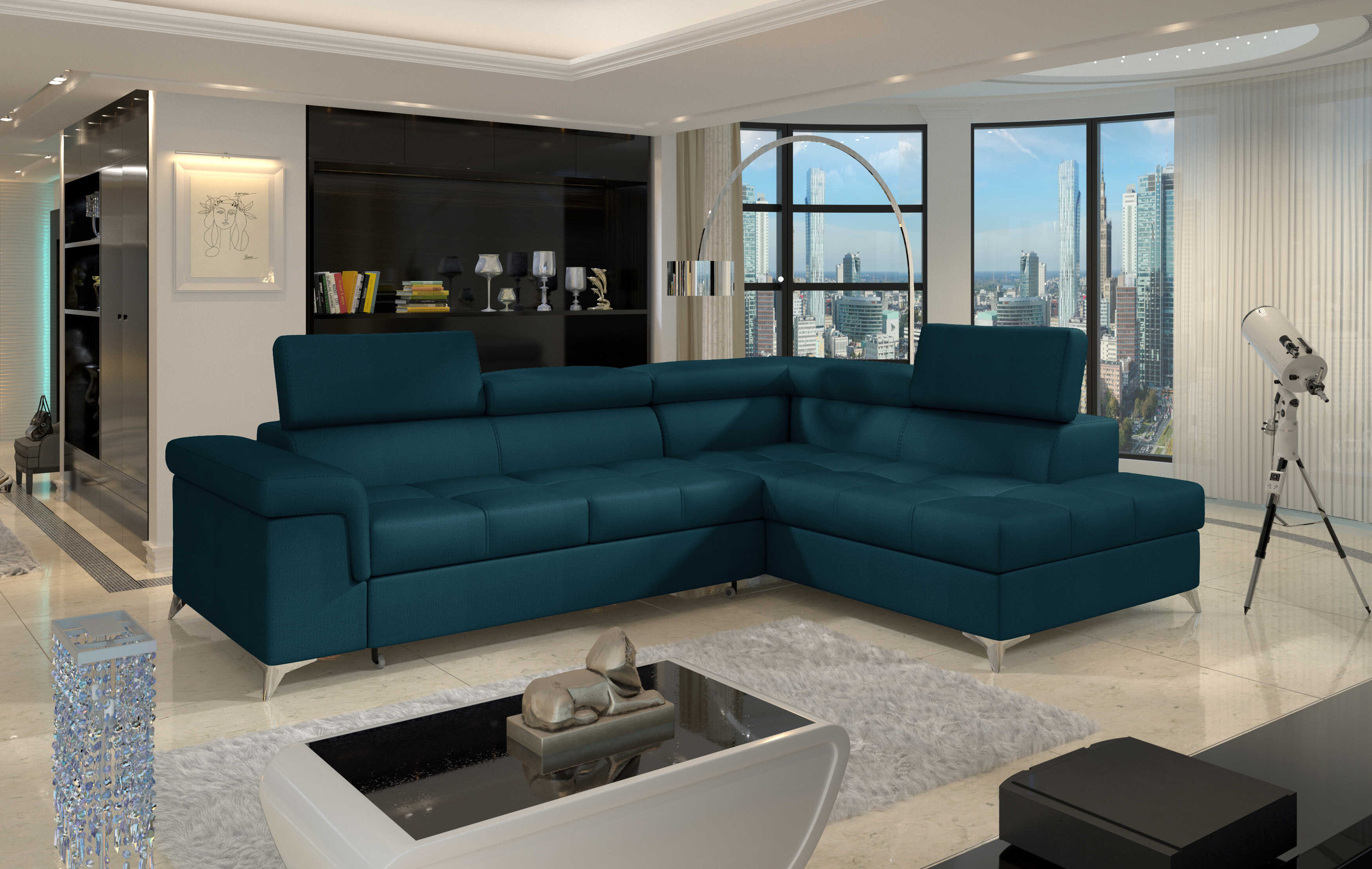Rohová sedacia súprava ERIDANO je prémiový produkt, ktorý Vám pomôže pocítiť čo je skutočný komfort. Klasické usporiadanie v tvare písmena L je kombinované s modernými prvkami ovplyvňujúcimi komfort používania a mimoriadne štýlovými dekoračnými prvkami, akými sú kov, chrómové nožičky s vysokým leskom. Priestranné sedadlá, vhodne tvarované operadlo vybavené dodatočnými pohyblivými opierkami hlavy, široká lakťová opierka – to všetko vám spríjemní odpočinok v súkromí vášho domova. Rohová sedacia súprava Eridano je vyrobená z najkvalitnejších materiálov. Ako prémiový kus nábytku je vysoko odolný voči opotrebovaniu. To všetko vďaka starostlivo vybraným poťahovým materiálom a pevnej výplni sedadla – vlnitá pružina v kombinácii s penou T30 a kvalitnou pružnou HR penou dáva efekt výnimočnej mäkkosti a pružnosti, premietnutej do správnej opory tela počas odpočinku. Sedacia súprava Eridano sa dá rozložiť plocha na spanie 125 x 193 cm. Tiež je vybavená praktickým úložným boxom umiestneným otomane, ktorý sa otvára smerom nahor.