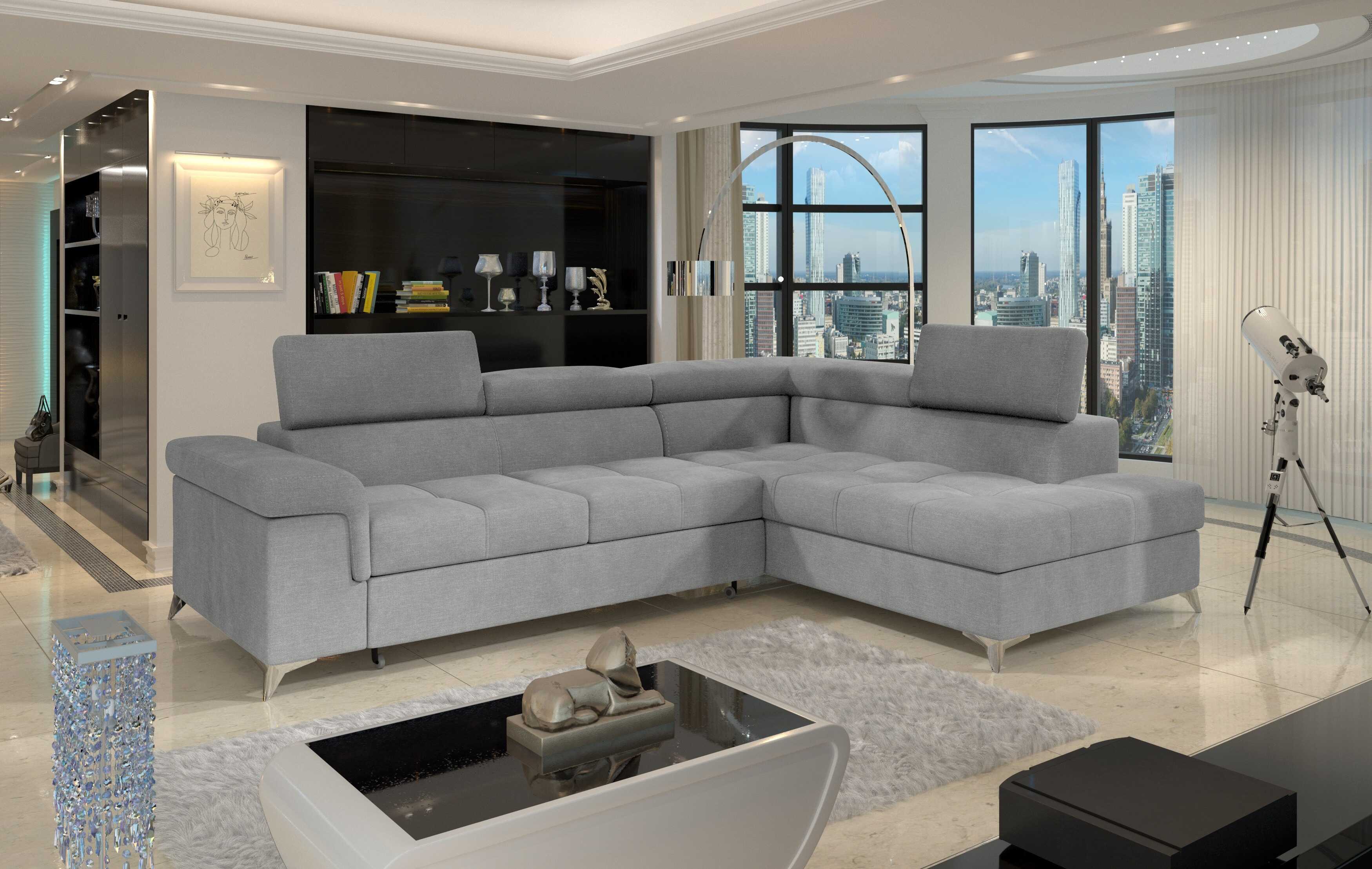 Rohová sedacia súprava ERIDANO je prémiový produkt, ktorý Vám pomôže pocítiť čo je skutočný komfort. Klasické usporiadanie v tvare písmena L je kombinované s modernými prvkami ovplyvňujúcimi komfort používania a mimoriadne štýlovými dekoračnými prvkami, akými sú kov, chrómové nožičky s vysokým leskom. Priestranné sedadlá, vhodne tvarované operadlo vybavené dodatočnými pohyblivými opierkami hlavy, široká lakťová opierka – to všetko vám spríjemní odpočinok v súkromí vášho domova. Rohová sedacia súprava Eridano je vyrobená z najkvalitnejších materiálov. Ako prémiový kus nábytku je vysoko odolný voči opotrebovaniu. To všetko vďaka starostlivo vybraným poťahovým materiálom a pevnej výplni sedadla – vlnitá pružina v kombinácii s penou T30 a kvalitnou pružnou HR penou dáva efekt výnimočnej mäkkosti a pružnosti, premietnutej do správnej opory tela počas odpočinku. Sedacia súprava Eridano sa dá rozložiť plocha na spanie 125 x 193 cm. Tiež je vybavená praktickým úložným boxom umiestneným otomane, ktorý sa otvára smerom nahor.