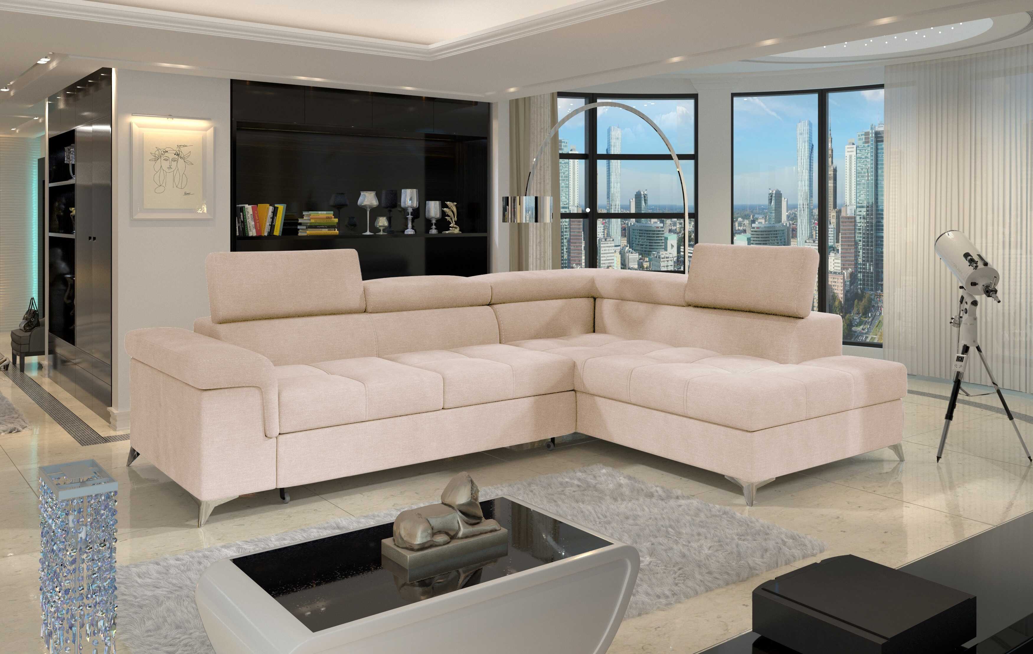 Rohová sedacia súprava ERIDANO je prémiový produkt, ktorý Vám pomôže pocítiť čo je skutočný komfort. Klasické usporiadanie v tvare písmena L je kombinované s modernými prvkami ovplyvňujúcimi komfort používania a mimoriadne štýlovými dekoračnými prvkami, akými sú kov, chrómové nožičky s vysokým leskom. Priestranné sedadlá, vhodne tvarované operadlo vybavené dodatočnými pohyblivými opierkami hlavy, široká lakťová opierka – to všetko vám spríjemní odpočinok v súkromí vášho domova. Rohová sedacia súprava Eridano je vyrobená z najkvalitnejších materiálov. Ako prémiový kus nábytku je vysoko odolný voči opotrebovaniu. To všetko vďaka starostlivo vybraným poťahovým materiálom a pevnej výplni sedadla – vlnitá pružina v kombinácii s penou T30 a kvalitnou pružnou HR penou dáva efekt výnimočnej mäkkosti a pružnosti, premietnutej do správnej opory tela počas odpočinku. Sedacia súprava Eridano sa dá rozložiť plocha na spanie 125 x 193 cm. Tiež je vybavená praktickým úložným boxom umiestneným otomane, ktorý sa otvára smerom nahor.