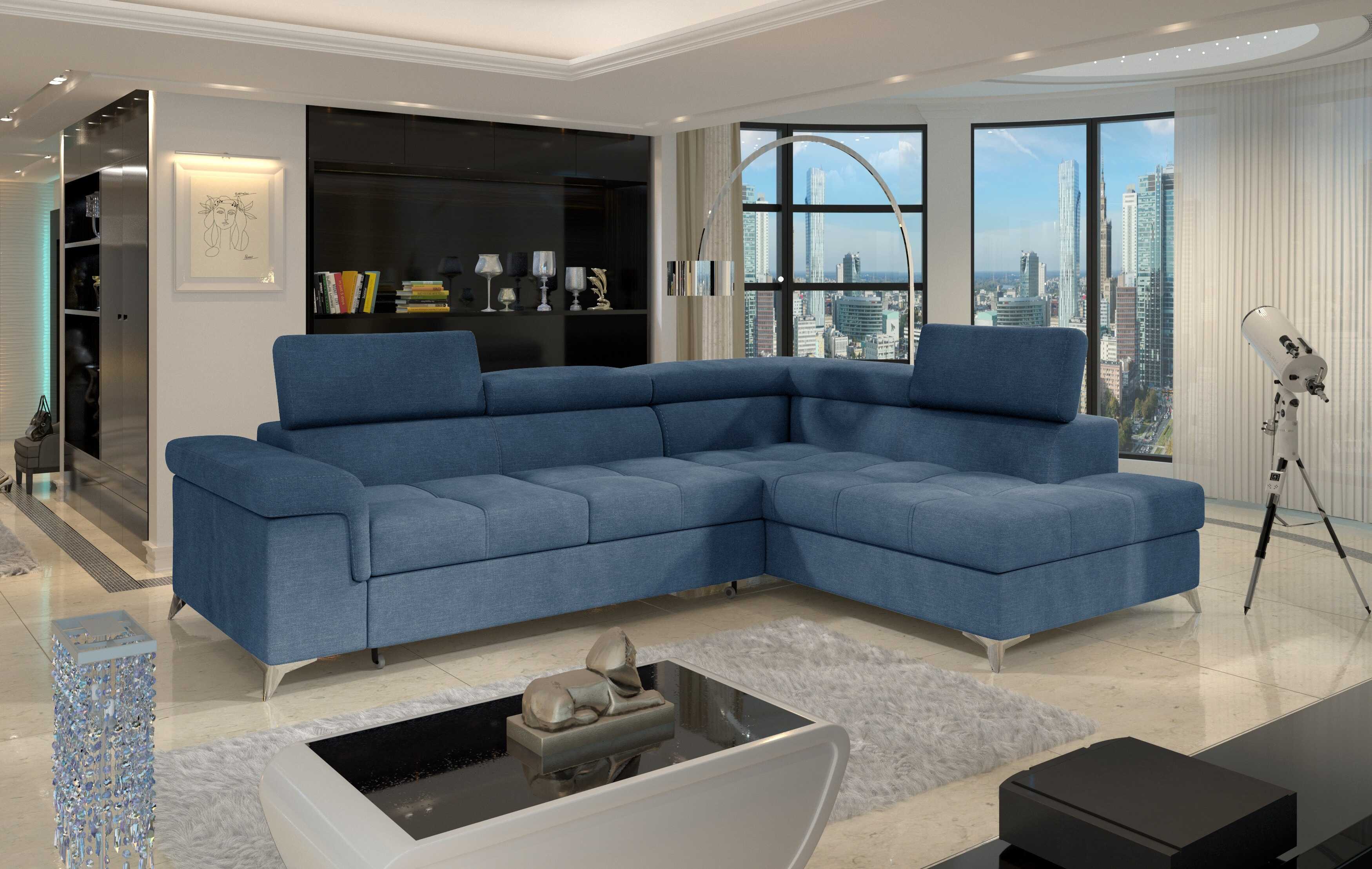 Rohová sedacia súprava ERIDANO je prémiový produkt, ktorý Vám pomôže pocítiť čo je skutočný komfort. Klasické usporiadanie v tvare písmena L je kombinované s modernými prvkami ovplyvňujúcimi komfort používania a mimoriadne štýlovými dekoračnými prvkami, akými sú kov, chrómové nožičky s vysokým leskom. Priestranné sedadlá, vhodne tvarované operadlo vybavené dodatočnými pohyblivými opierkami hlavy, široká lakťová opierka – to všetko vám spríjemní odpočinok v súkromí vášho domova. Rohová sedacia súprava Eridano je vyrobená z najkvalitnejších materiálov. Ako prémiový kus nábytku je vysoko odolný voči opotrebovaniu. To všetko vďaka starostlivo vybraným poťahovým materiálom a pevnej výplni sedadla – vlnitá pružina v kombinácii s penou T30 a kvalitnou pružnou HR penou dáva efekt výnimočnej mäkkosti a pružnosti, premietnutej do správnej opory tela počas odpočinku. Sedacia súprava Eridano sa dá rozložiť plocha na spanie 125 x 193 cm. Tiež je vybavená praktickým úložným boxom umiestneným otomane, ktorý sa otvára smerom nahor.