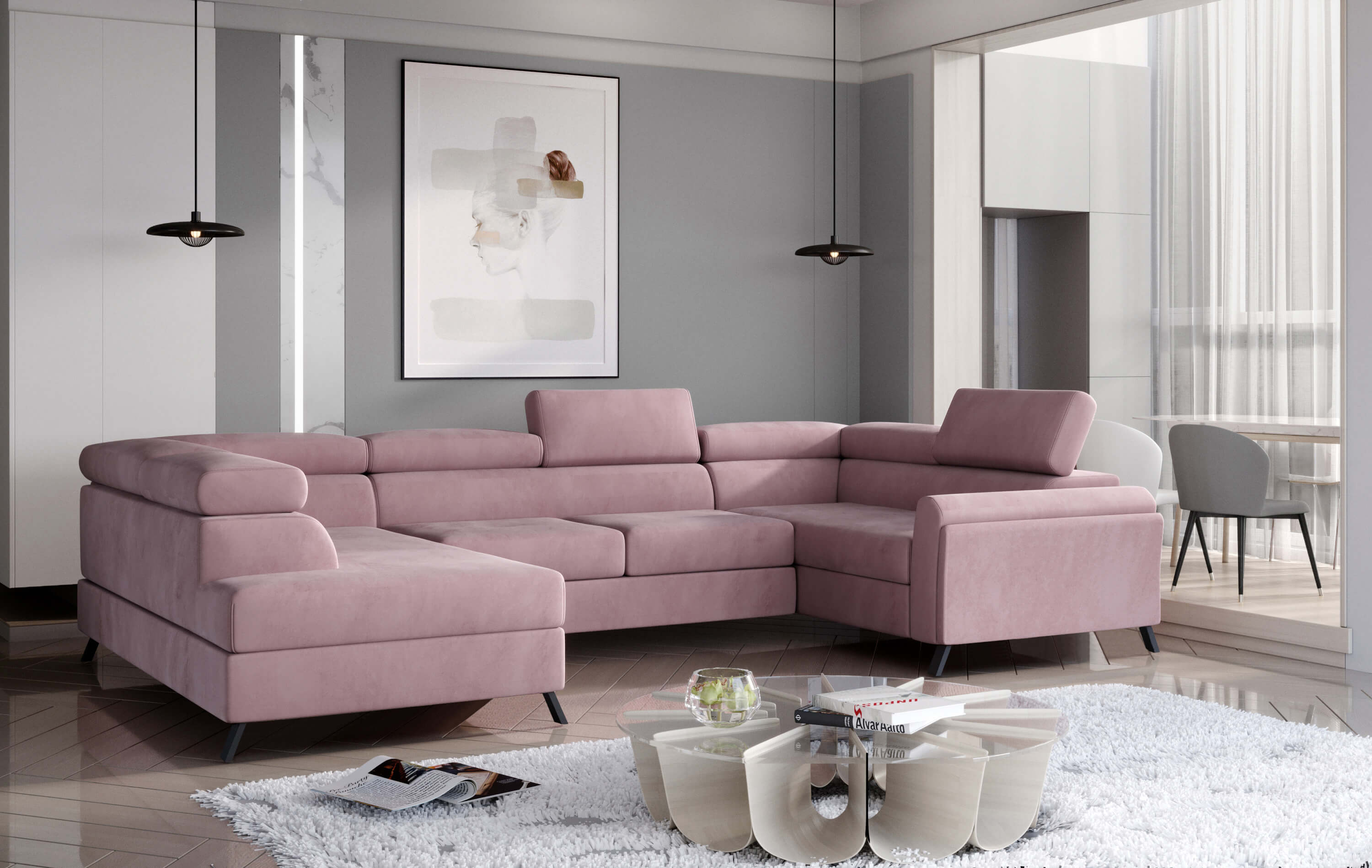 Vytvorte si z obývacej izby atraktívny priestor s dizajnovou rohovou sedacou súpravou ESCADA v ľavom prevedení. Vďaka vyšším nohám z ocele v kombinácii s drevom pôsobí konštrukcia sedačky odľahčene, pričom však nestráca na stabilite. Vďaka čalúnenej zadnej strane je vhodná aj do priestoru. Oceníte veľký úložný priestor a vybavenie rozkladacou funkciou na spanie, založenou na veľmi intuitívnom systéme delfín – vďaka ktorému bude ľahké získať miesto na spanie s rozlohou až 110 x 215 cm. Spravte si z obývacej izby harmonický a zladený celok vďaka originálnej sedačke ESCADA.