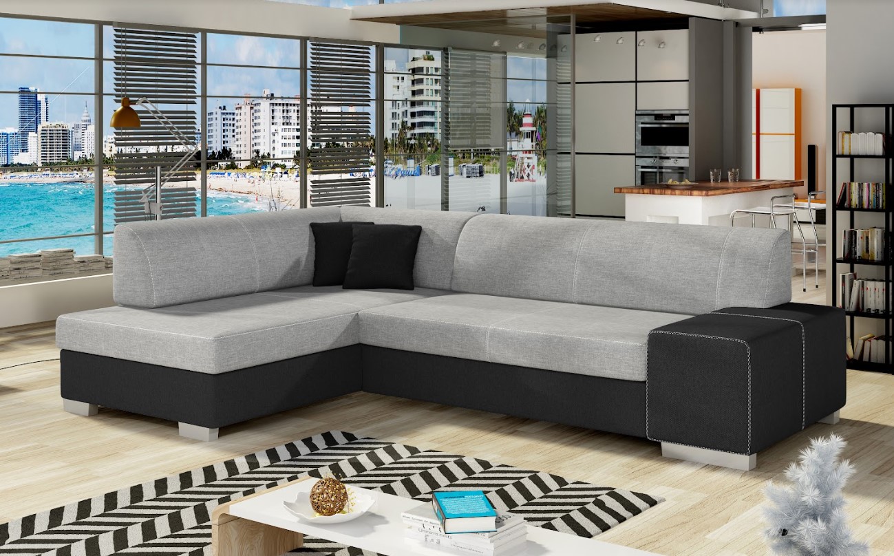 Moderná rozkladacia rohová súprava FABIO s úložným priestorom, ktorá bude istotne vhodným reprezentačným kusom nábytku vo Vašej obývačke. Rohová sedacia súprava FABIO je v ľavom prevedení v kombinácií dvoch farieb. Kvalitné prevedenie rozkladacej časti zaručuje bezproblémové používanie. Oceníte úložný priestor.