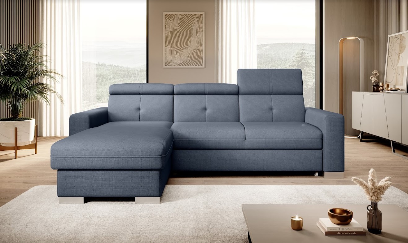 Vytvorte si z obývacej izby atraktívny priestor s dizajnovou rohovou sedacou súpravou FRESIA v ľavom prevedení. Mimoriadny dizajn dodáva pohovke jednoduché prešívanie na sedení a poholovacie opierky, vďaka čalúnenej zadnej strane je vhodná aj do priestoru. Oceníte veľký úložný priestor a vybavenie rozkladacou funkciou na spanie, založenou na DL mechanizme – vďaka ktorému bude ľahké získať miesto na spanie s rozlohou až 126 x 204 cm. Spravte si z obývacej izby harmonický a zladený celok vďaka originálnej sedačke FRESIA.