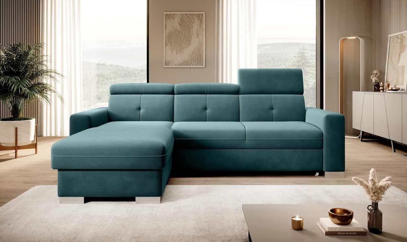 Vytvorte si z obývacej izby atraktívny priestor s dizajnovou rohovou sedacou súpravou FRESIA v ľavom prevedení. Mimoriadny dizajn dodáva pohovke jednoduché prešívanie na sedení a poholovacie opierky, vďaka čalúnenej zadnej strane je vhodná aj do priestoru. Oceníte veľký úložný priestor a vybavenie rozkladacou funkciou na spanie, založenou na DL mechanizme – vďaka ktorému bude ľahké získať miesto na spanie s rozlohou až 126 x 204 cm. Spravte si z obývacej izby harmonický a zladený celok vďaka originálnej sedačke FRESIA.