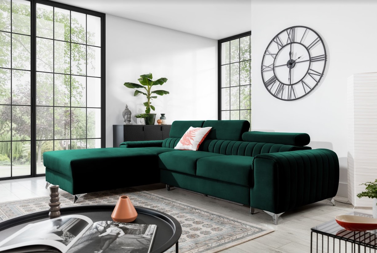 Vytvorte si z obývacej izby atraktívny priestor s dizajnovou rohovou sedacou súpravou GRAYSON v ľavom prevedení. Vďaka vyšším nohám z ocele pôsobí konštrukcia sedačky odľahčene, pričom však nestráca na stabilite. Mimoriadny dizajn dodáva pohovke pútavé prešívanie na operadle a podrúčkach, vďaka čalúnenej zadnej strane je vhodná aj do priestoru. Oceníte veľký úložný priestor a vybavenie rozkladacou funkciou na spanie, založenou na veľmi intuitívnom systéme delfín – vďaka ktorému bude ľahké získať miesto na spanie s rozlohou až 125 x 210 cm. Spravte si z obývacej izby harmonický a zladený celok vďaka originálnej sedačke GRAYSON.