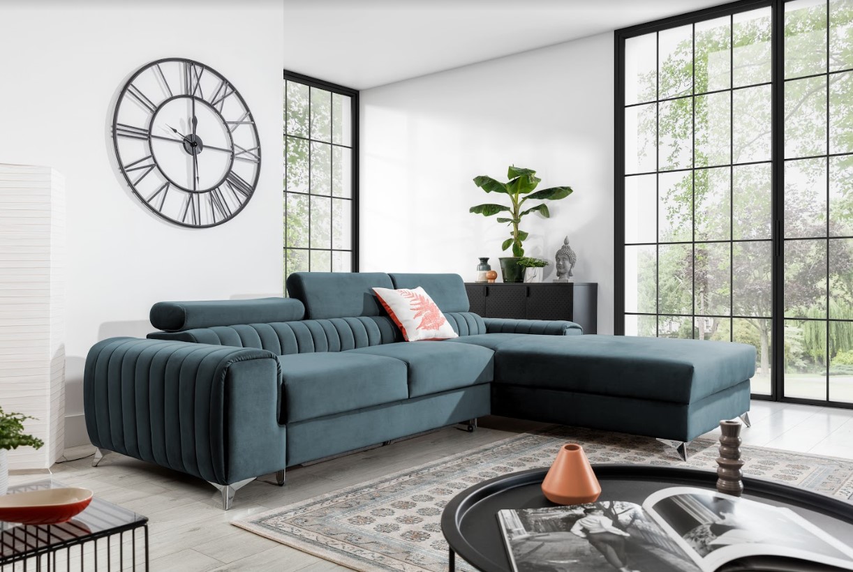 Vytvorte si z obývacej izby atraktívny priestor s dizajnovou rohovou sedacou súpravou GRAYSON v pravom prevedení. Vďaka vyšším nohám z ocele pôsobí konštrukcia sedačky odľahčene, pričom však nestráca na stabilite. Mimoriadny dizajn dodáva pohovke pútavé prešívanie na operadle a podrúčkach, vďaka čalúnenej zadnej strane je vhodná aj do priestoru. Oceníte veľký úložný priestor a vybavenie rozkladacou funkciou na spanie, založenou na veľmi intuitívnom systéme delfín – vďaka ktorému bude ľahké získať miesto na spanie s rozlohou až 125 x 210 cm. Spravte si z obývacej izby harmonický a zladený celok vďaka originálnej sedačke GRAYSON.