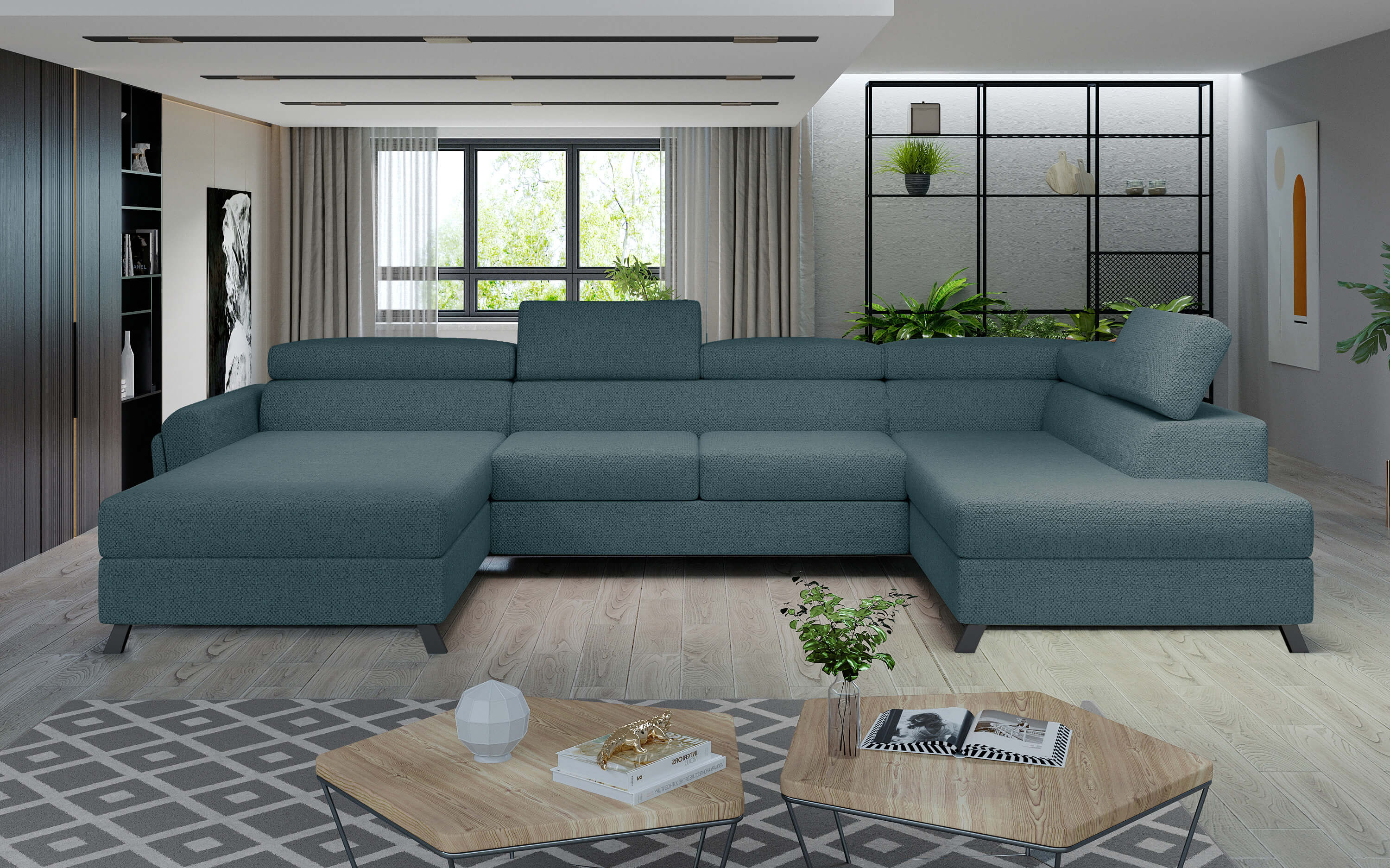 Vytvorte si z obývacej izby atraktívny priestor s dizajnovou rohovou sedacou súpravou do U v pravom prevedení. Vďaka vyšším nohám z ocele v kombinácii s drevom pôsobí konštrukcia sedačky odľahčene, pričom však nestráca na stabilite. Vďaka čalúnenej zadnej strane je vhodná aj do priestoru. Oceníte veľký úložný priestor a vybavenie rozkladacou funkciou na spanie, založenou na veľmi intuitívnom systéme delfín – vďaka ktorému bude ľahké získať miesto na spanie s rozlohou až 110 x 300 cm. Spravte si z obývacej izby harmonický a zladený celok vďaka originálnej sedačke JOSETTE.