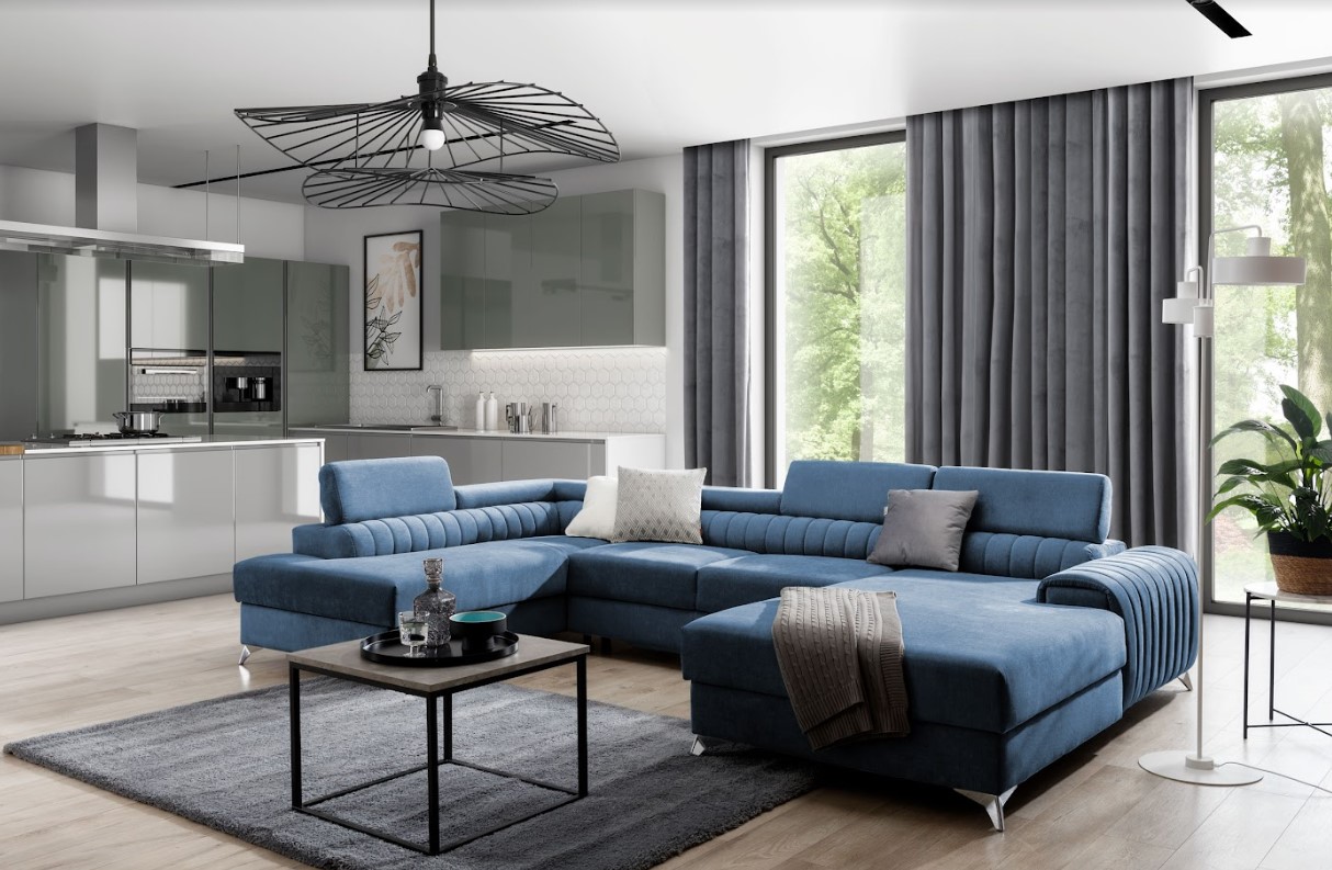 Vytvorte si z obývacej izby atraktívny priestor s dizajnovou sedacou súpravou v tvare U. Vďaka vyšším nohám z chrómovej ocele pôsobí konštrukcia sedačky odľahčene, pričom však nestráca na stabilite. Mimoriadny dizajn dodáva pohovke zaujímavé prešívanie medzi sedením a hlavovými opierkami, komfort užívania zvyšuje možnosť polohovania hlavovej opierky.  Vďaka čalúnenej zadnej strane je vhodná aj do priestoru. Veľkým plusom je úložný priestor a možnosť rozloženia na spanie, vďaka veľmi intuitívnemu systému delfín bude ľahké získať miesto na spanie s rozlohou až 123 x 265 cm. Spravte si z obývacej izby harmonický a zladený celok vďaka originálnej sedačke LACANTE v ľavom prevedení.