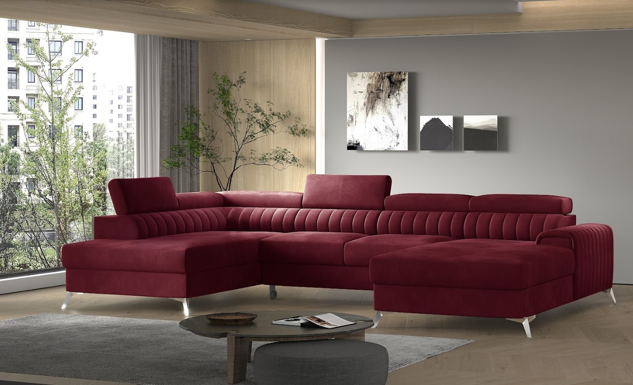 Vytvorte si z obývacej izby atraktívny priestor s dizajnovou sedacou súpravou v tvare U. Vďaka vyšším nohám z chrómovej ocele pôsobí konštrukcia sedačky odľahčene, pričom však nestráca na stabilite. Mimoriadny dizajn dodáva pohovke zaujímavé prešívanie medzi sedením a hlavovými opierkami, komfort užívania zvyšuje možnosť polohovania hlavovej opierky.  Vďaka čalúnenej zadnej strane je vhodná aj do priestoru. Veľkým plusom je úložný priestor a možnosť rozloženia na spanie, vďaka veľmi intuitívnemu systému delfín bude ľahké získať miesto na spanie s rozlohou až 123 x 265 cm. Spravte si z obývacej izby harmonický a zladený celok vďaka originálnej sedačke LACANTE v ľavom prevedení.