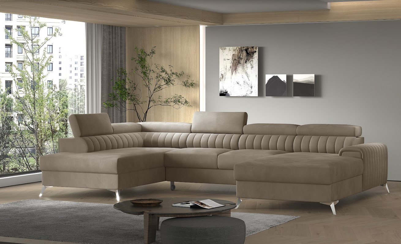 Vytvorte si z obývacej izby atraktívny priestor s dizajnovou sedacou súpravou v tvare U. Vďaka vyšším nohám z chrómovej ocele pôsobí konštrukcia sedačky odľahčene, pričom však nestráca na stabilite. Mimoriadny dizajn dodáva pohovke zaujímavé prešívanie medzi sedením a hlavovými opierkami, komfort užívania zvyšuje možnosť polohovania hlavovej opierky. Vďaka čalúnenej zadnej strane je vhodná aj do priestoru. Veľkým plusom je úložný priestor a možnosť rozloženia na spanie, vďaka veľmi intuitívnemu systému delfín bude ľahké získať miesto na spanie s rozlohou až 123 x 265 cm. Spravte si z obývacej izby harmonický a zladený celok vďaka originálnej sedačke LACANTE v ľavom prevedení.