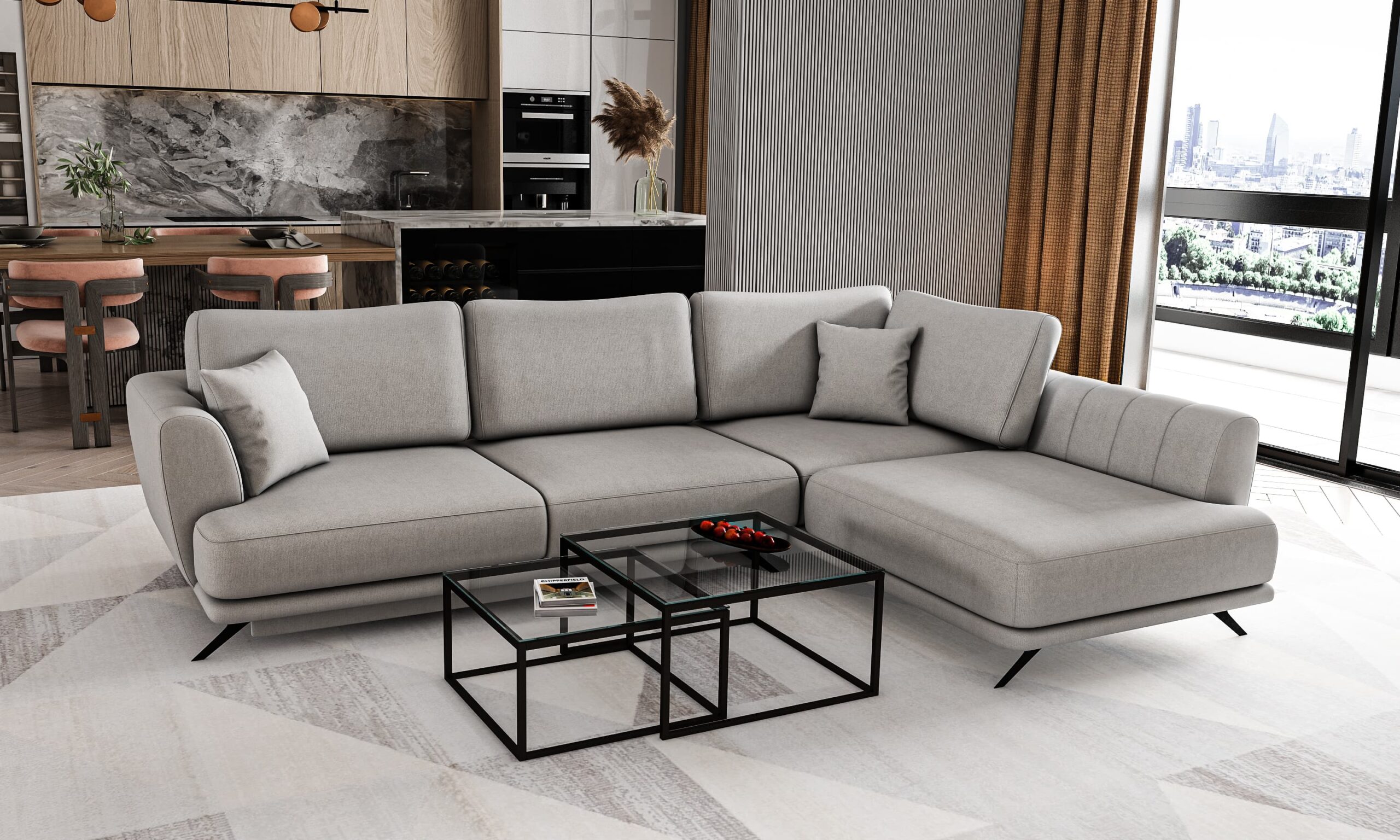 Rohová sedacia súprava LARDE je veľmi pohodlná, praktická, vysoko funkčná, elegantná, ale aj výrazná. Rohová sedacia súprava LARDE sa bude hodiť do každého obývačky akéhokoľvek štýlu. Sedacia súprava je vyrobená v ľavom prevedení. Užite si výnimočnú mäkkosť a najvyšší pocit jedinečného každodenného pohodlia. To všetko vďaka výplni sedadla HR penou. Vďaka mechanizmu typu Delphin ľahko a intuitívne premeníme pohodlnú pohovku na veľkú posteľ s plochou na spanie s rozmermi 126 x 240 cm. Za zmienku stojí aj nádoba na podstielku. Toto riešenie vám ušetrí priestor, a tiež – pomôže vám to udržať poriadok.