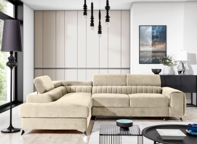 Rohová sedacia súprava Laurence vnesie do interiéru luxusný dizajn. Moderná sedacia súprava LAURENCE má dostatočný úložný priestor, je rozkladacia, ponúka pohodlné a široké sedenie. Spacia plocha o rozmere 210 x 125 cm. Sedacia súprava je celočalúnená aj zo zadnej strany. Lakťové opierky sú ozdobené prešívaním. Nožičky sedacej súpravy sú kovové, z chrómovanej ocele. Rohová sedacia súprava Laurence sa vyrába v rôznych farebných a materiálových prevedeniach.