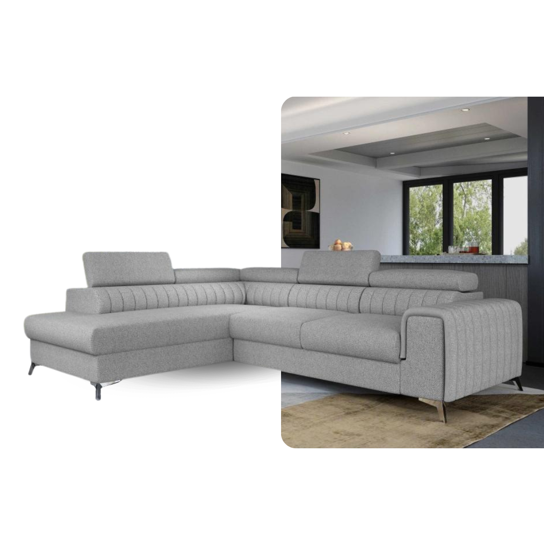 Rohová sedacia súprava Laurence vnesie do interiéru luxusný dizajn. Moderná sedacia súprava LAURENCE má dostatočný úložný priestor, je rozkladacia, ponúka pohodlné a široké sedenie. Spacia plocha o rozmere 210 x 125 cm. Sedacia súprava je celočalúnená aj zo zadnej strany. Lakťové opierky sú ozdobené prešívaním. Nožičky sedacej súpravy sú kovové, z chrómovanej ocele. Rohová sedacia súprava Laurence sa vyrába v rôznych farebných a materiálových prevedeniach.