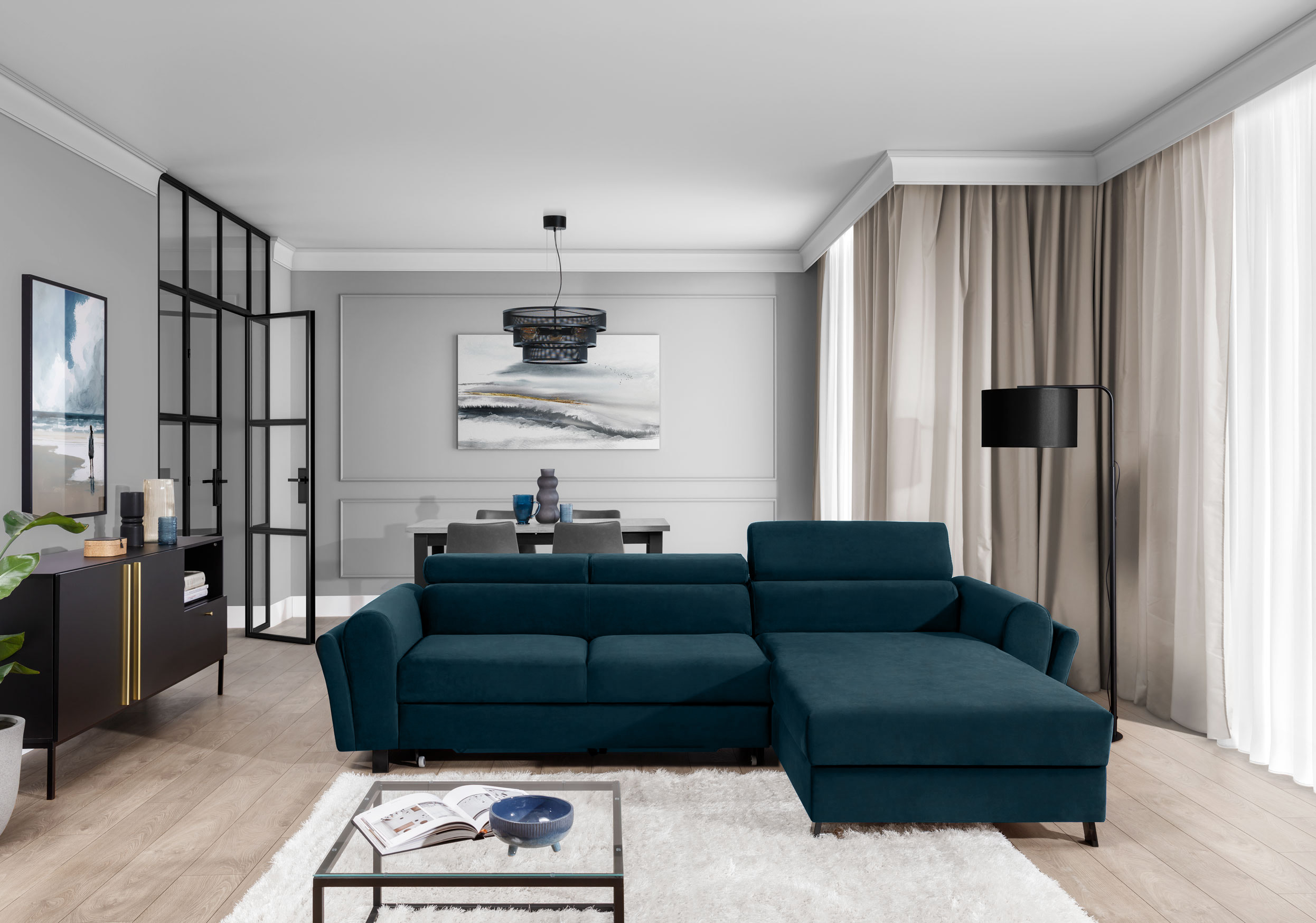 Vytvorte si z obývacej izby atraktívny priestor so štýlovou rohovou sedacou súpravou MARIALL v pravom prevedení.  Mimoriadny dizajn dodávajú pohovke polohovacie opierky, vďaka čalúnenej zadnej strane je vhodná aj do priestoru. Oceníte veľký úložný priestor a vybavenie rozkladacou funkciou na spanie, založenou na mechanizme delfín – vďaka ktorému bude ľahké získať miesto na spanie s rozlohou až 123 x 239 cm. Spravte si z obývacej izby harmonický a zladený celok vďaka originálnej sedačke MARIALL.