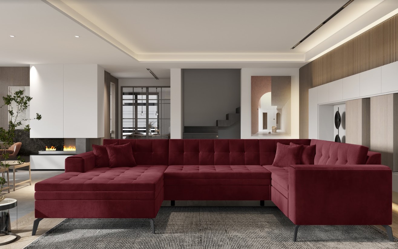 Vytvorte si z obývacej izby atraktívny priestor s dizajnovou rohovou sedacou súpravou v tvare U MONTEZ v ľavom prevedení. Vďaka čalúnenej zadnej strane je vhodná aj do priestoru. Oceníte veľký úložný priestor a vybavenie rozkladacou funkciou na spanie, založenou na veľmi intuitívnom systéme delfín – vďaka ktorému bude ľahké získať miesto na spanie s rozlohou až 120 x 275 cm. Spravte si z obývacej izby harmonický a zladený celok vďaka originálnej sedačke MONTEZ.