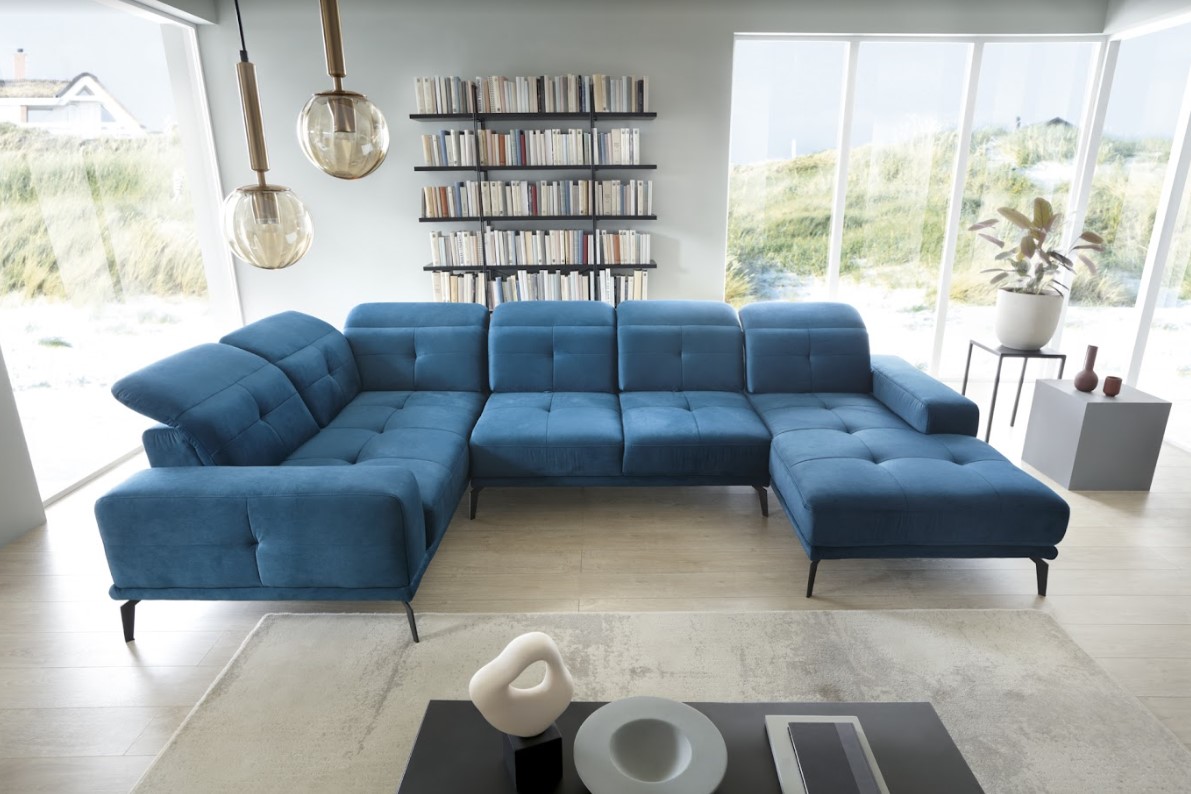 Vytvorte si z obývacej izby atraktívny priestor s dizajnovou sedacou súpravou NEVIRO v tvare U. Vďaka vysokým čiernym nohám pôsobí konštrukcia sedačky odľahčene, pričom však nestráca na stabilite. Mimoriadny dizajn dodáva pohovke ozdobné prešívanie na celej ploche sedenia a komfort užívania zvyšuje možnosť polohovania hlavovej opierky. Vďaka čalúnenej zadnej strane je vhodná aj do priestoru. Spravte si z obývacej izby harmonický a zladený celok vďaka originálnej sedačke NEVIRO v ľavom prevedení.
