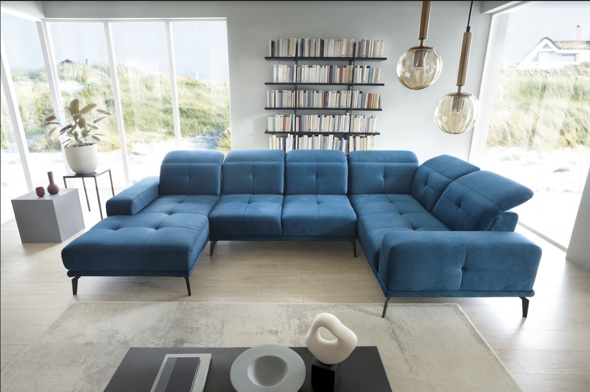 Vytvorte si z obývacej izby atraktívny priestor s dizajnovou sedacou súpravou v tvare U. Vďaka vysokým čiernym nohám pôsobí konštrukcia sedačky odľahčene, pričom však nestráca na stabilite. Mimoriadny dizajn dodáva pohovke ozdobné prešívanie na celej ploche sedenia a komfort užívania zvyšuje možnosť polohovania hlavovej opierky. Vďaka čalúnenej zadnej strane je vhodná aj do priestoru. Spravte si z obývacej izby harmonický a zladený celok vďaka originálnej sedačke NEVIRO v pravom prevedení.