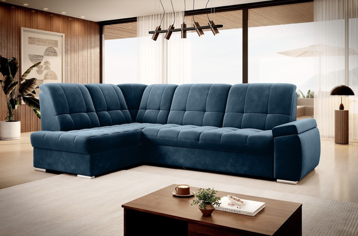Vytvorte si z obývacej izby atraktívny priestor s dizajnovou rohovou sedacou súpravou SADO v ľavom prevedení. Mimoriadny dizajn dodáva pohovke pútavé prešitie a zaujímavé tvarovanie podrúčok, vďaka čalúnenej zadnej strane je vhodná aj do priestoru. Oceníte vybavenie rozkladacou funkciou na spanie, založenou na mechanizme deflín – vďaka ktorému bude ľahké získať miesto na spanie s rozlohou až 130 x 207 cm. Spravte si z obývacej izby harmonický a zladený celok vďaka originálnej sedacej súprave SADO.