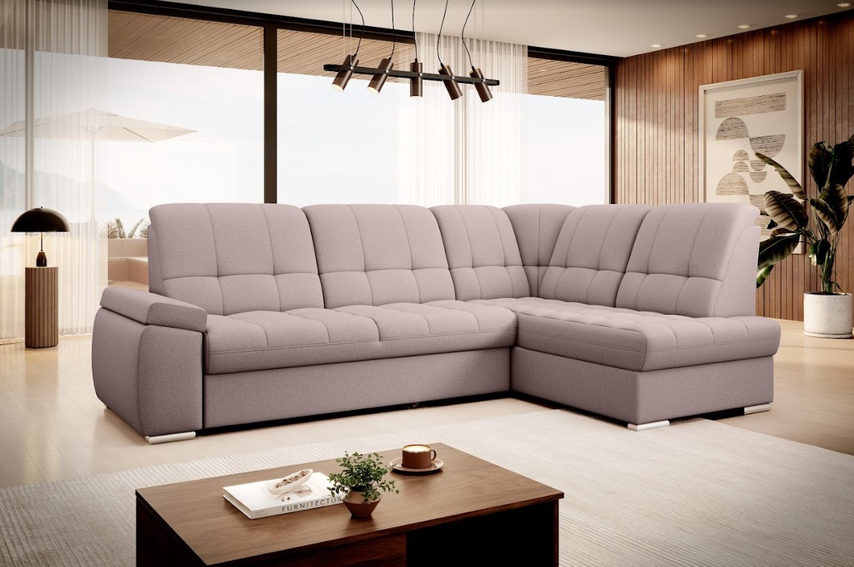 Vytvorte si z obývacej izby atraktívny priestor s dizajnovou rohovou sedacou súpravou SADO v pravom prevedení. Mimoriadny dizajn dodáva pohovke pútavé prešitie a zaujímavé tvarovanie podrúčok, vďaka čalúnenej zadnej strane je vhodná aj do priestoru. Oceníte vybavenie rozkladacou funkciou na spanie, založenou na mechanizme deflín – vďaka ktorému bude ľahké získať miesto na spanie s rozlohou až 130 x 207 cm. Spravte si z obývacej izby harmonický a zladený celok vďaka originálnej sedacej súprave SADO.