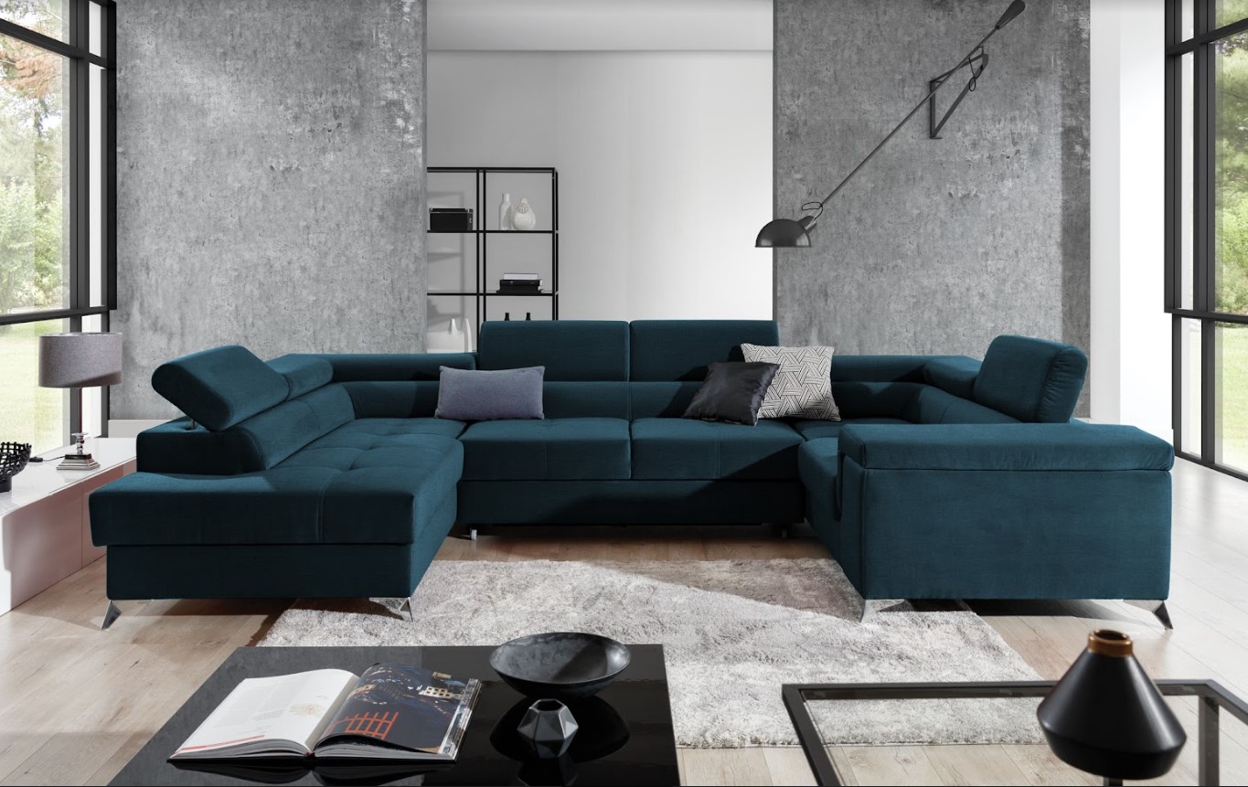 Vytvorte si z obývacej izby atraktívny priestor s dizajnovou sedacou súpravou THIAGO v tvare U. Vďaka vysokým a štíhlym lesklým oceľovým nohám pôsobí konštrukcia sedačky odľahčene, pričom však nestráca na stabilite. Mimoriadny dizajn dodáva pohovke ozdobné prešívanie na celej ploche sedenia a komfort užívania zvyšuje možnosť polohovania hlavovej opierky. Oceníte veľký úložný priestor a vybavenie rozkladacou funkciou na spanie s rozlohou až 125 x 265 cm. Spravte si z obývacej izby harmonický a zladený celok vďaka originálnej sedačke THIAGO v ľavom prevedení.