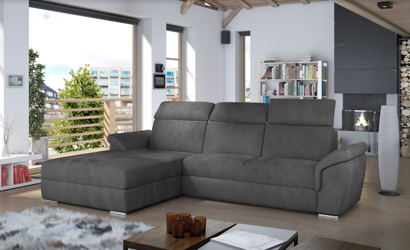Vytvorte si z obývacej izby atraktívny priestor s dizajnovou rohovou sedacou súpravou TREVISCO v ľavom prevedení. Vďaka čalúnenej zadnej strane je vhodná aj do priestoru. Oceníte veľký úložný priestor a vybavenie rozkladacou funkciou na spanie, založenou na veľmi intuitívnom systéme delfín – vďaka ktorému bude ľahké získať miesto na spanie s rozlohou až 127 x 210 cm. Spravte si z obývacej izby harmonický a zladený celok vďaka originálnej sedačke TREVISCO.