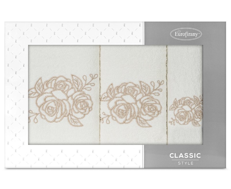Sada uterákov ROSALIA 3 obsahuje 3 kusy jemných uterákov praktických rozmerov. Uteráky sú bavlenené, veľmi dobre savé a príjemné na dotyk a vďaka praktickému baleniu je sada vhodná aj ako darček.