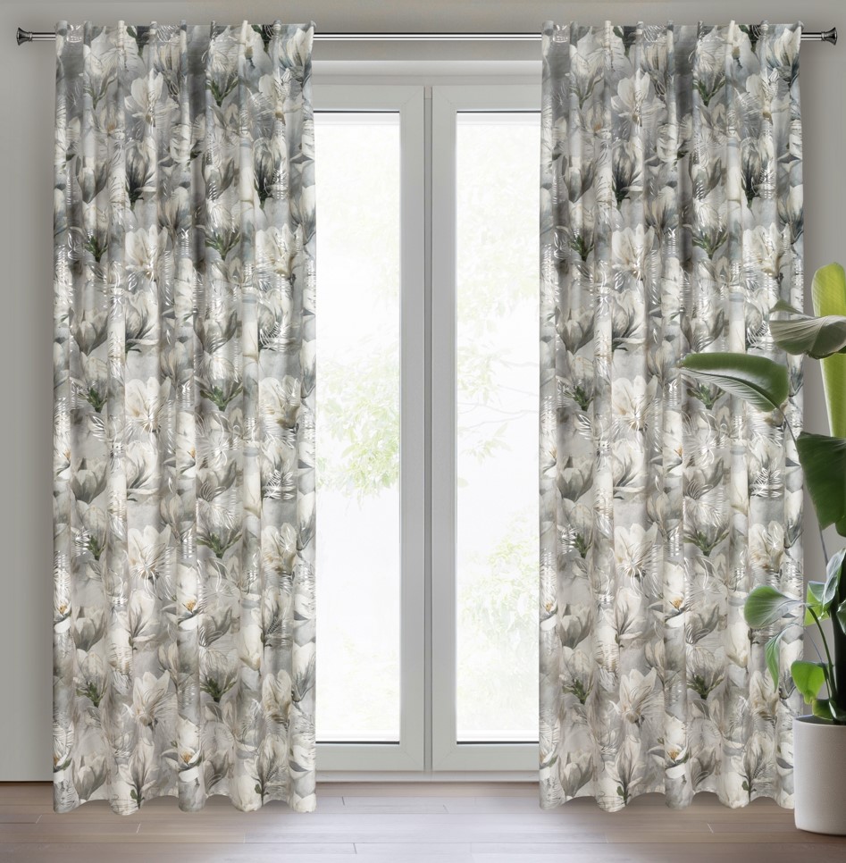 Hotový záves do obývačky SANDY na riasiacej páske vo veľkolepom rozmere 140 x 300 cm zatieni aj väčšie okno. Krásna potlač sivých kvetov v lesklom prevedení navodí sviatočnú či romantickú atmosféru. Spoľahlivo zatieni okno v obývačke či v spálni. Neváhajte a pozriete si aj ďalšie závesy z našej ponuky.