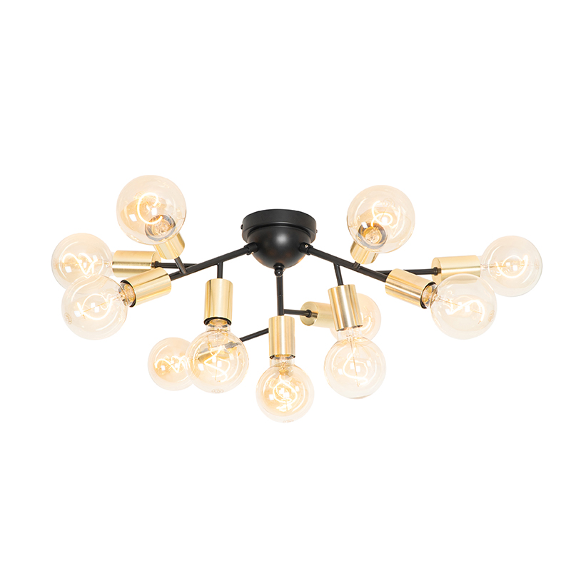 Dizajnové stropné svietidlo čierne so zlatom 12-žiarovkové – Juul