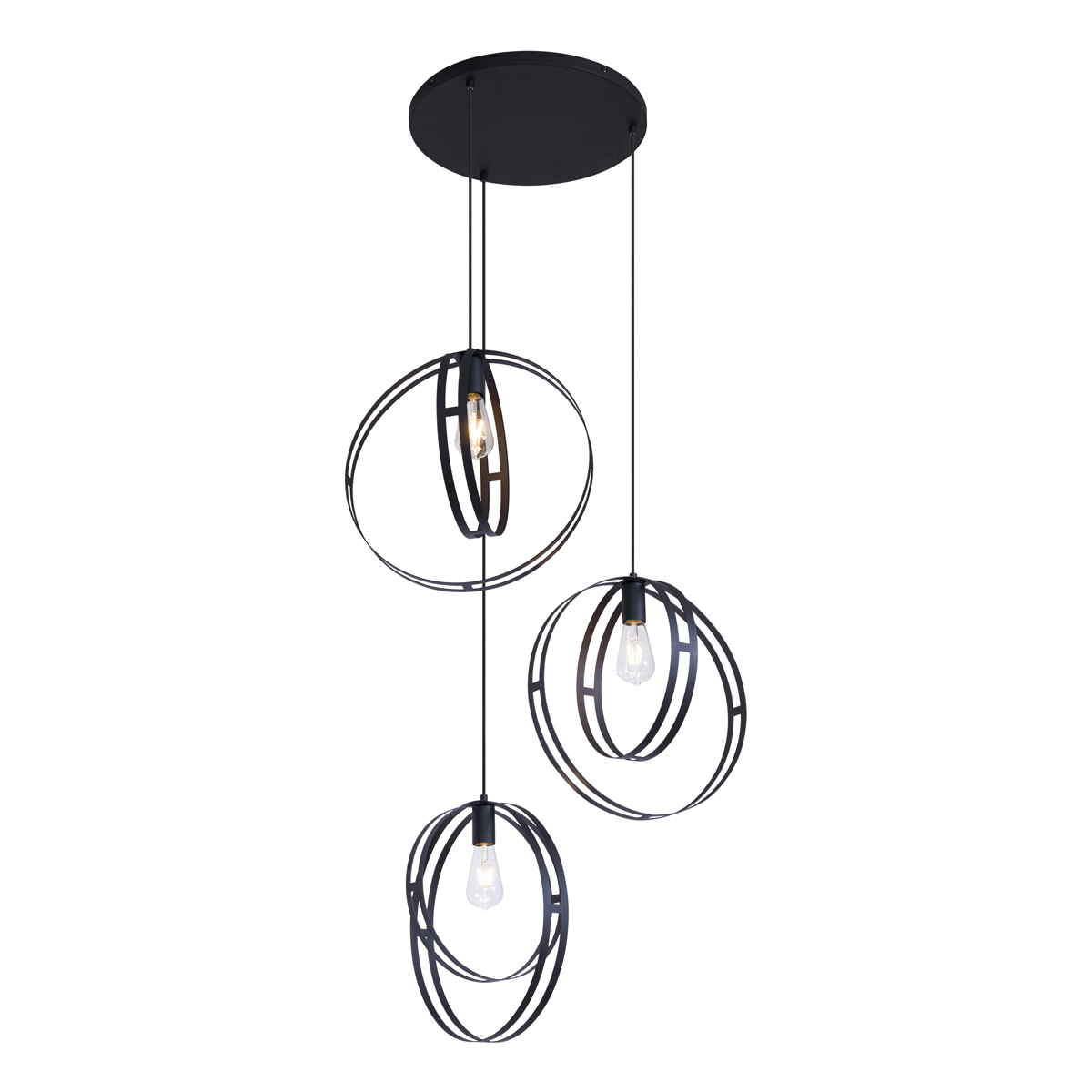 Dizajnové závesné svietidlo čierne okrúhle s 3 svetlami – Indu
