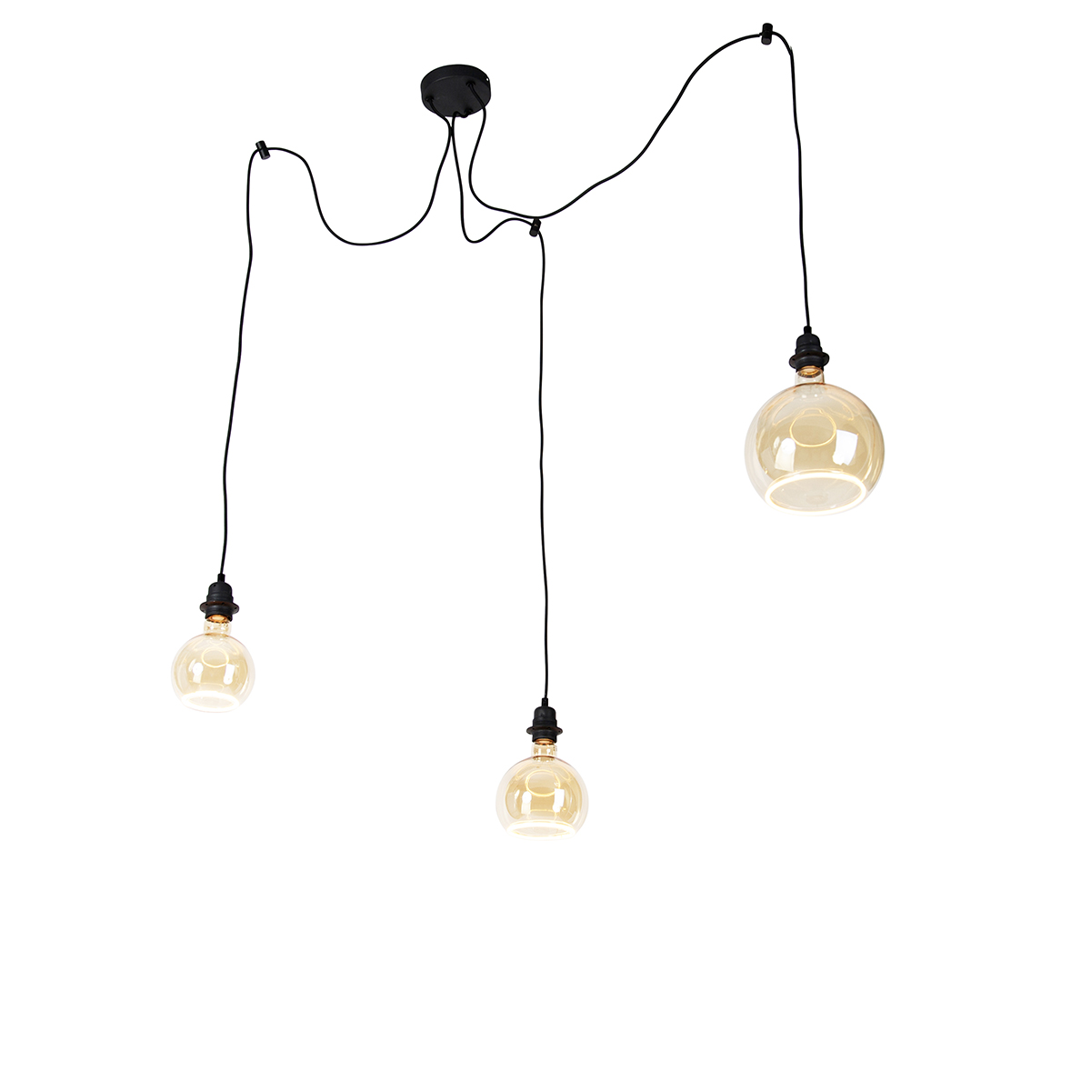 Hanglamp zwart 3-lichts incl. deco G125 en G150 G200 – Cava