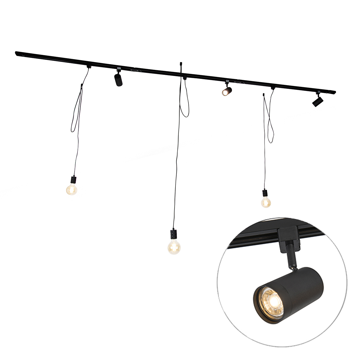 Inteligentný koľajnicový systém svietidiel čierny s 3 bodovými svetlami a závesným svetlom 1-fázový – Iconic Cavalux Jeana