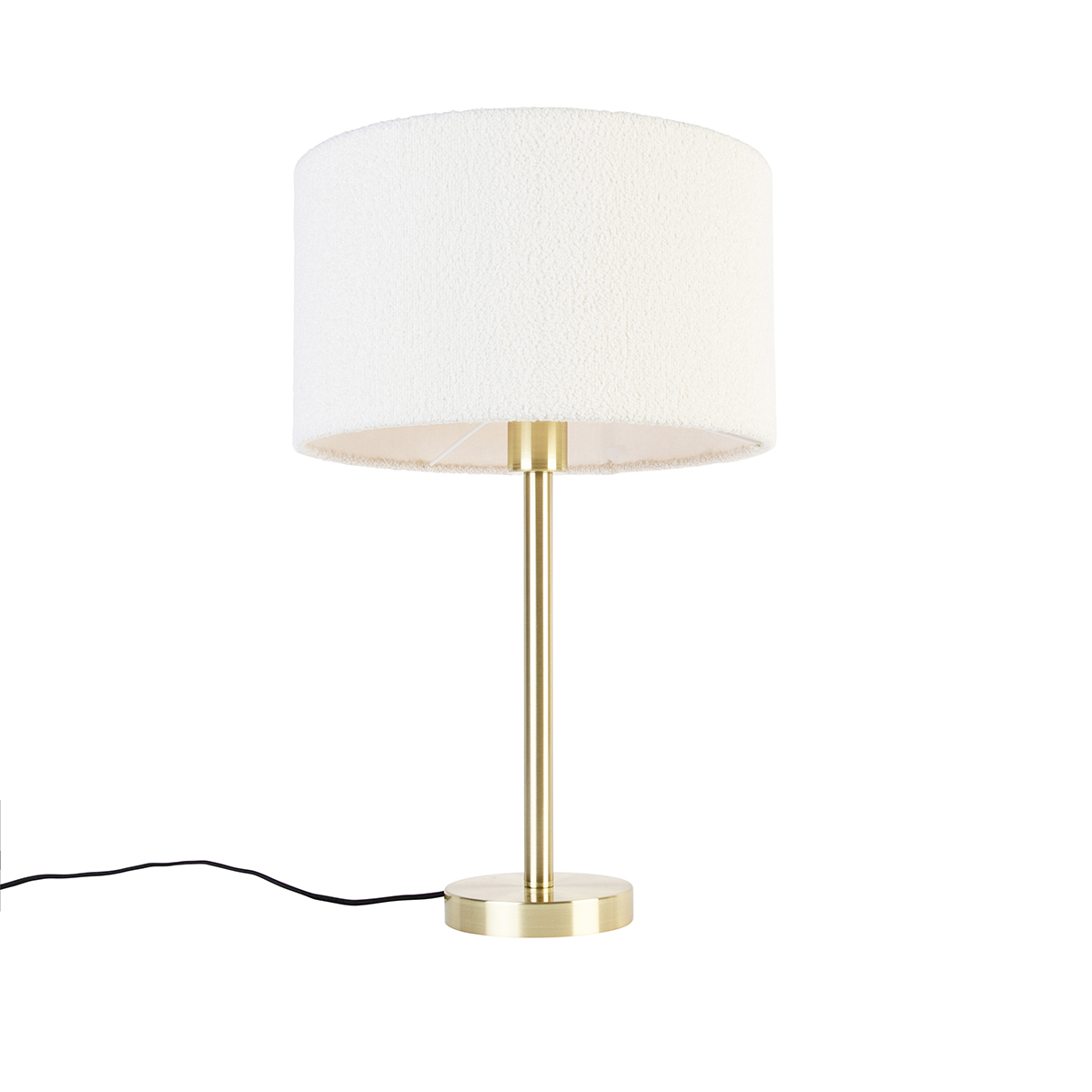 Klassieke tafellamp messing met boucle kap wit 35 cm – Simplo