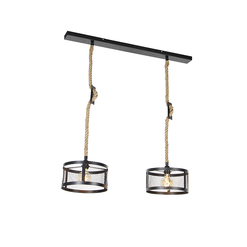 Priemyselná závesná lampa čierna s lanom 2-svetlo – Cage Robusto