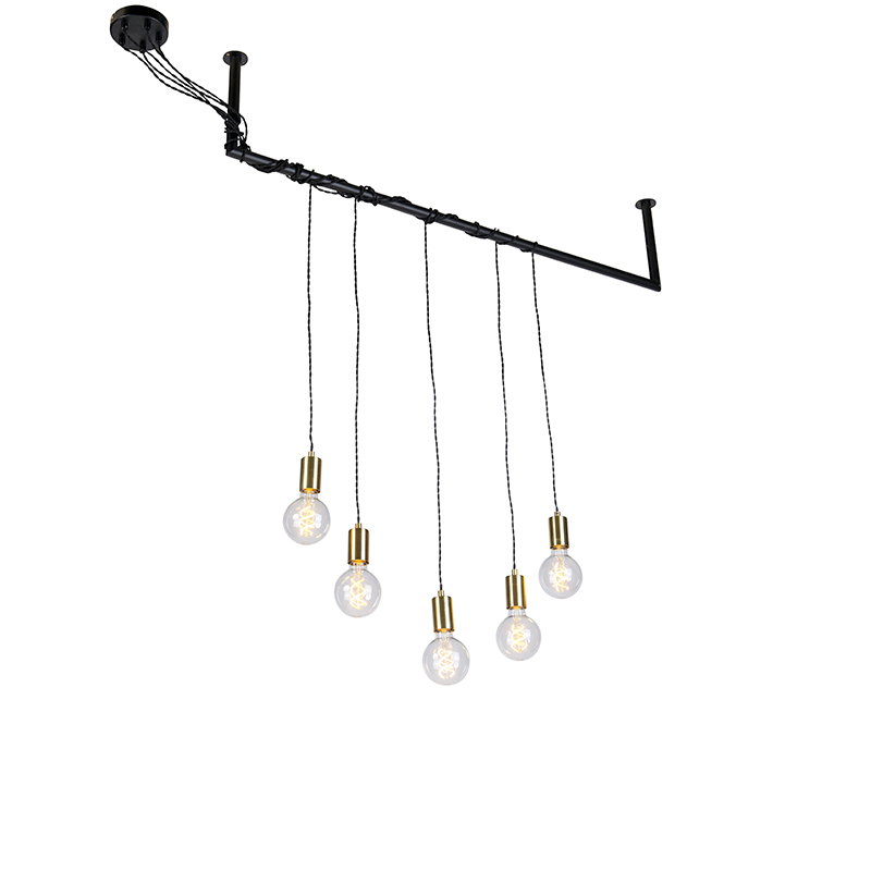 Priemyselná závesná lampa čierna s mosadzou 5 svetiel – Cavoba