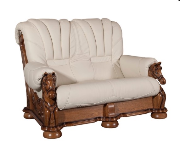 Luxusná kožená sedacia súprava MUSTANG ponúka starodávny štýl s romantickým nádychom. Sedacia súprava sa vyznačuje dokonale vyrezávanými ornamentmi v dreve po bokoch sedačky. Na opierkach sedacej súpravy sú vyrezávané konské hlavy, ktoré sú jedinečnými umeleckými dielami. Táto neprehliadnuteľná sedacia súprava bude dominantným prvkom v každej domácnosti milovníkov klasiky. Celkový šmrnc dodávajú sedacej súprave mohutné vyrezávané nohy. Na výber je niekoľko druhov kože. Pri objednávke prosím uveďte požadovanú farebnú variantu v poznámke. Uvedená cena platí pre základnú cenovú skupinu, pričom sa môže líšiť v závislosti od výberu kože. Cena sedacej zostavy MUSTANG 3R+2+1 zahŕňa 3-sed s rozkladom.