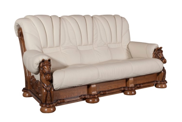 Luxusná kožená sedacia súprava MUSTANG ponúka starodávny štýl s romantickým nádychom. Sedacia súprava sa vyznačuje dokonale vyrezávanými ornamentmi v dreve po bokoch sedačky. Na opierkach sedacej súpravy sú vyrezávané konské hlavy, ktoré sú jedinečnými umeleckými dielami. Táto neprehliadnuteľná sedacia súprava bude dominantným prvkom v každej domácnosti milovníkov klasiky. Celkový šmrnc dodávajú sedacej súprave mohutné vyrezávané nohy. Na výber je niekoľko druhov kože. Pri objednávke prosím uveďte požadovanú farebnú variantu v poznámke. Uvedená cena platí pre základnú cenovú skupinu, pričom sa môže líšiť v závislosti od výberu kože. Cena sedacej zostavy MUSTANG 3R+2+1 zahŕňa 3-sed s rozkladom.