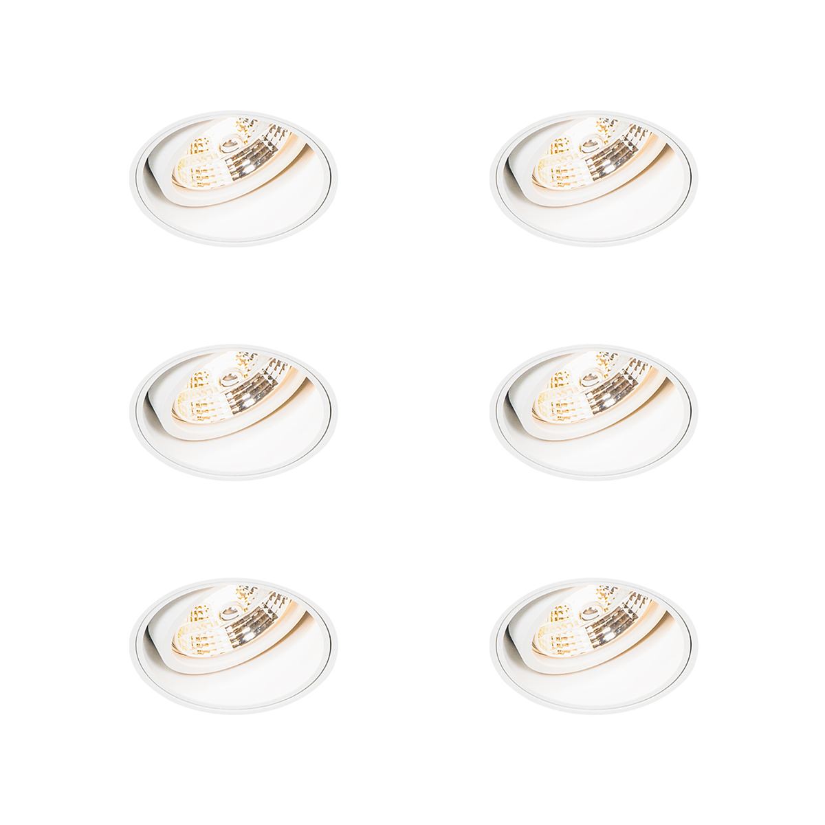 Sada 6 moderných zapustených bodových svetiel biele bezrámové – Impact 70