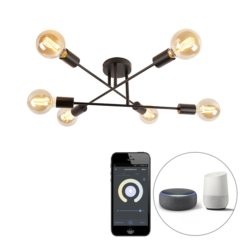 Smart plafondlamp zwart 6-lichts incl. Wifi G95 – Sydney Bondi